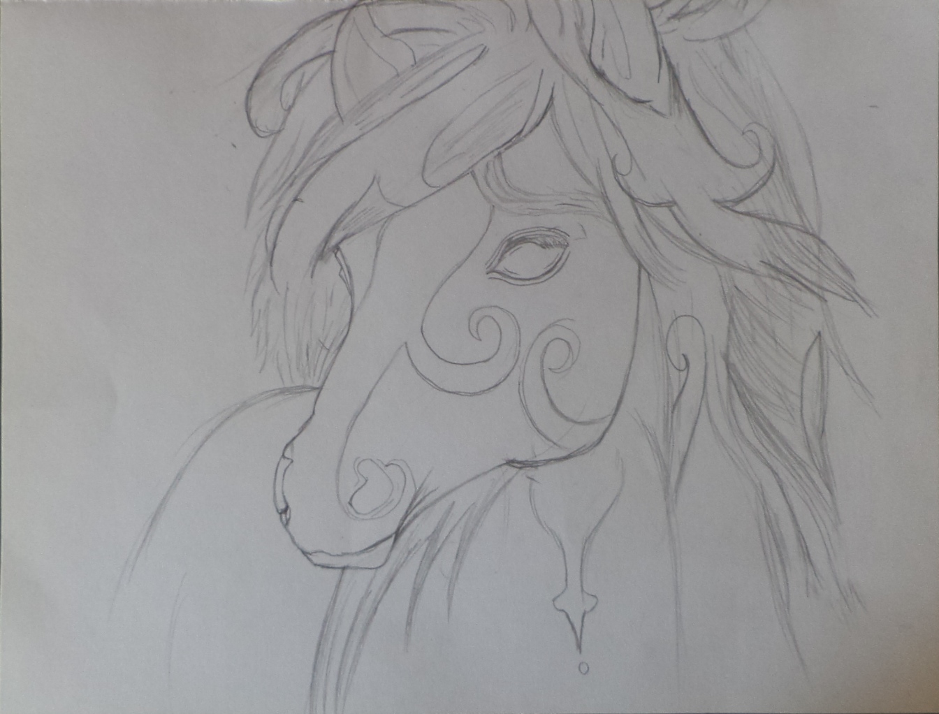 Primero hice la forma del caballo y después le hice los detalles que como pueden son el cabello y unas figuras en la cara..