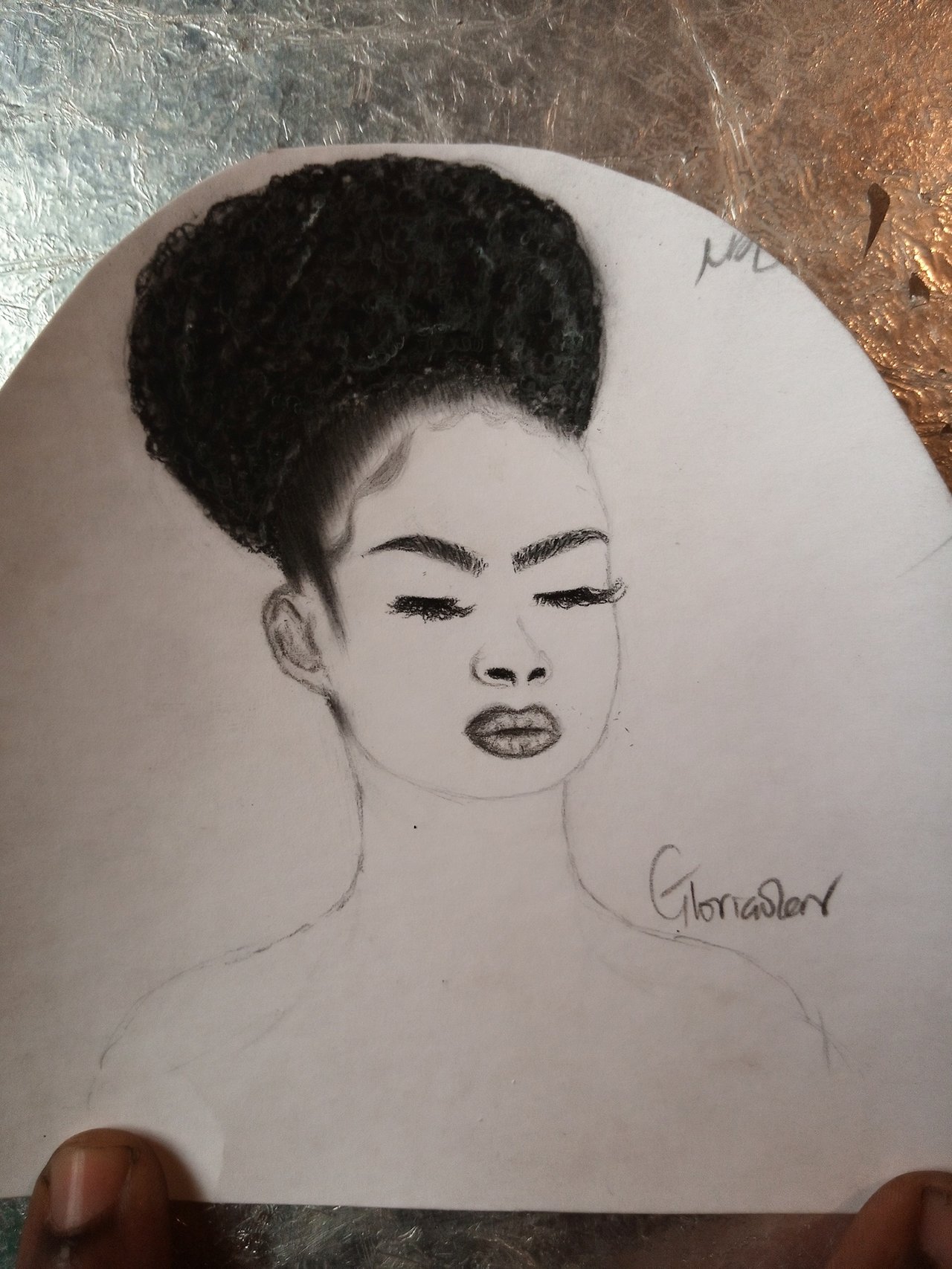 Hello Steemits, how was your day? I made this little sketch today and i decided to share it here. I call it inner beauty. I haven't draw a curly hair in my portraits drawings so im using my sketches to practice thick kinky hair drawing.
