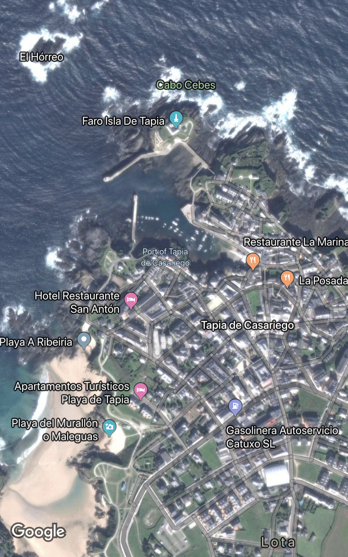 I give you a screenshot of Google Maps so that you can see the location of the port as well as the Islote del Hórreo as the parishioners call it, I hope you like it.