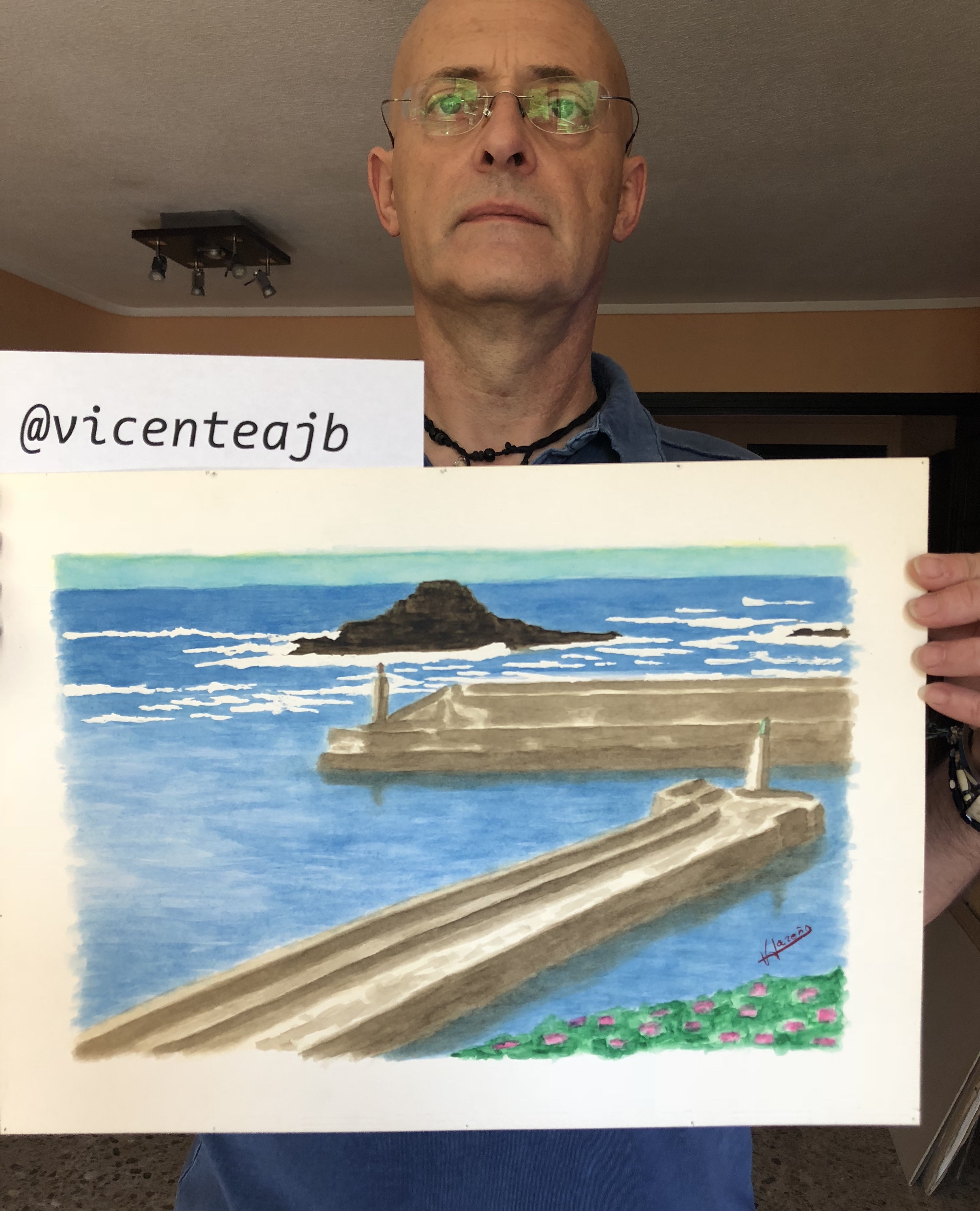 It is a painting of the port, with the 2 entrance breakers that protect the small dock from the temporary of the Cantabrian Sea very brave for most of the year.