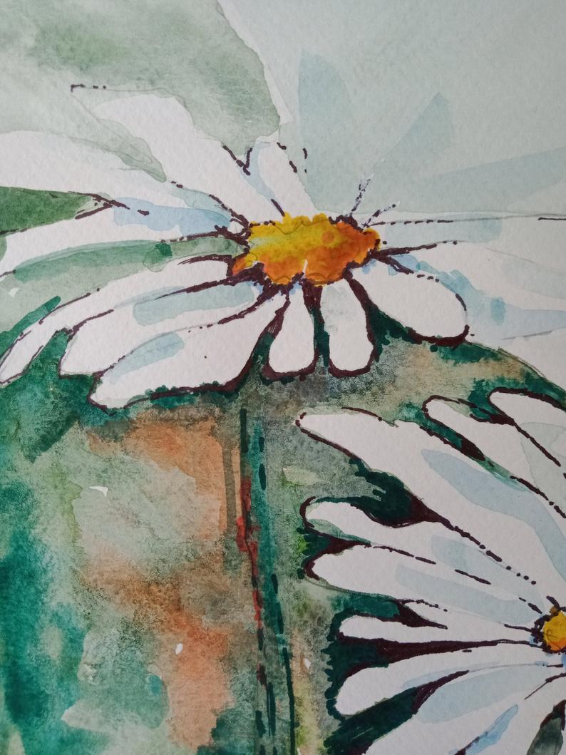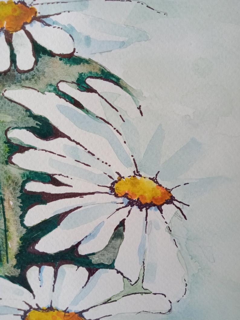 Source: Yuriy Kraft https://www.saatchiart.com/art/Painting-Daisies-original-watercolour-painting-28x38-cm/819257/3078518//view