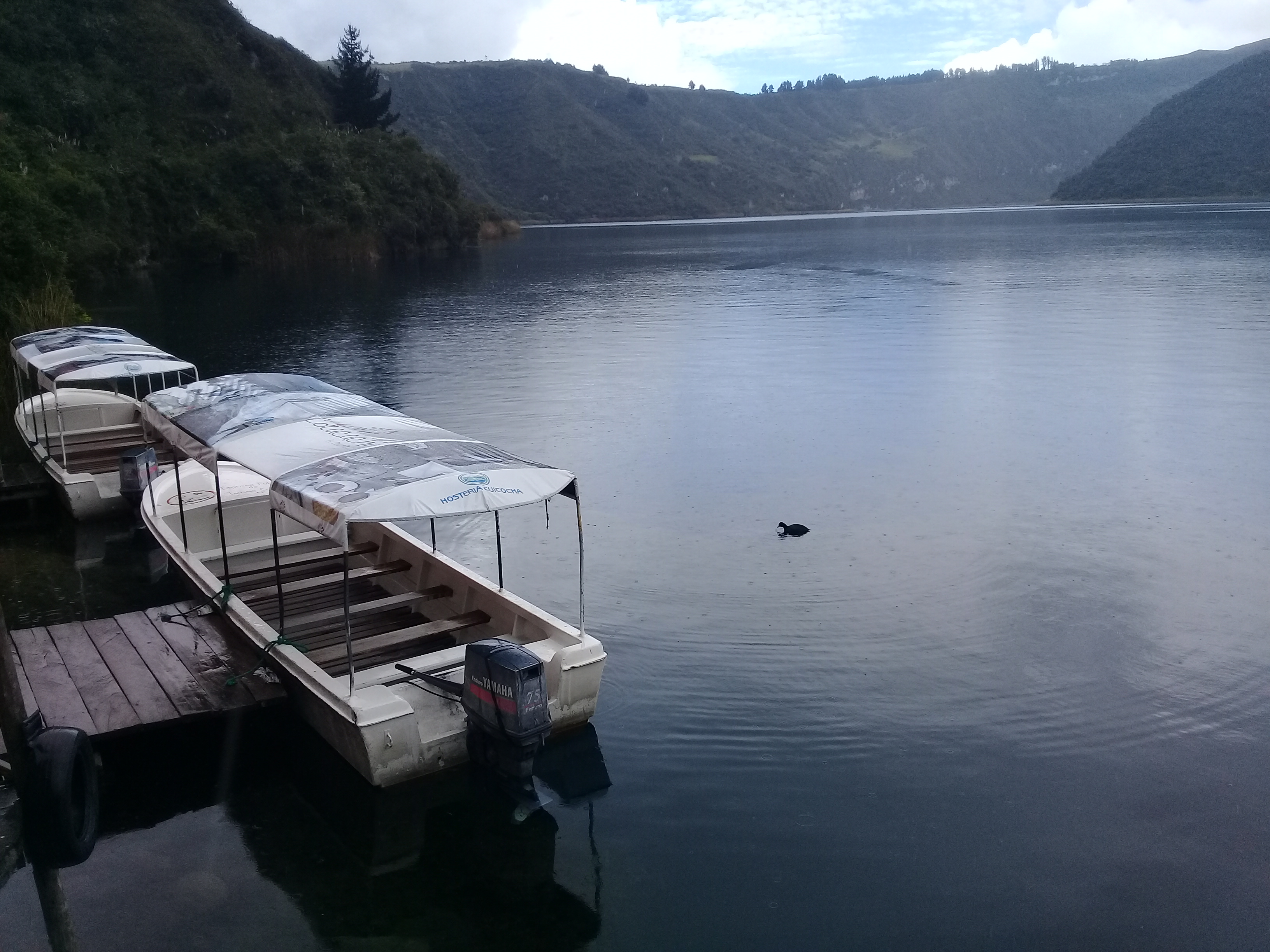 Al llegar a la Cuicocha de nuevo nos sentimos enamorados y en gratitud de ver la inmensidad de la laguna, con el agua tan transparente, con las plantas y las avecitas en ella. Las aves estaban nadando todo el tiempo y en cualquier momento se hundían y salían con tal gracia que nos hacían reír.