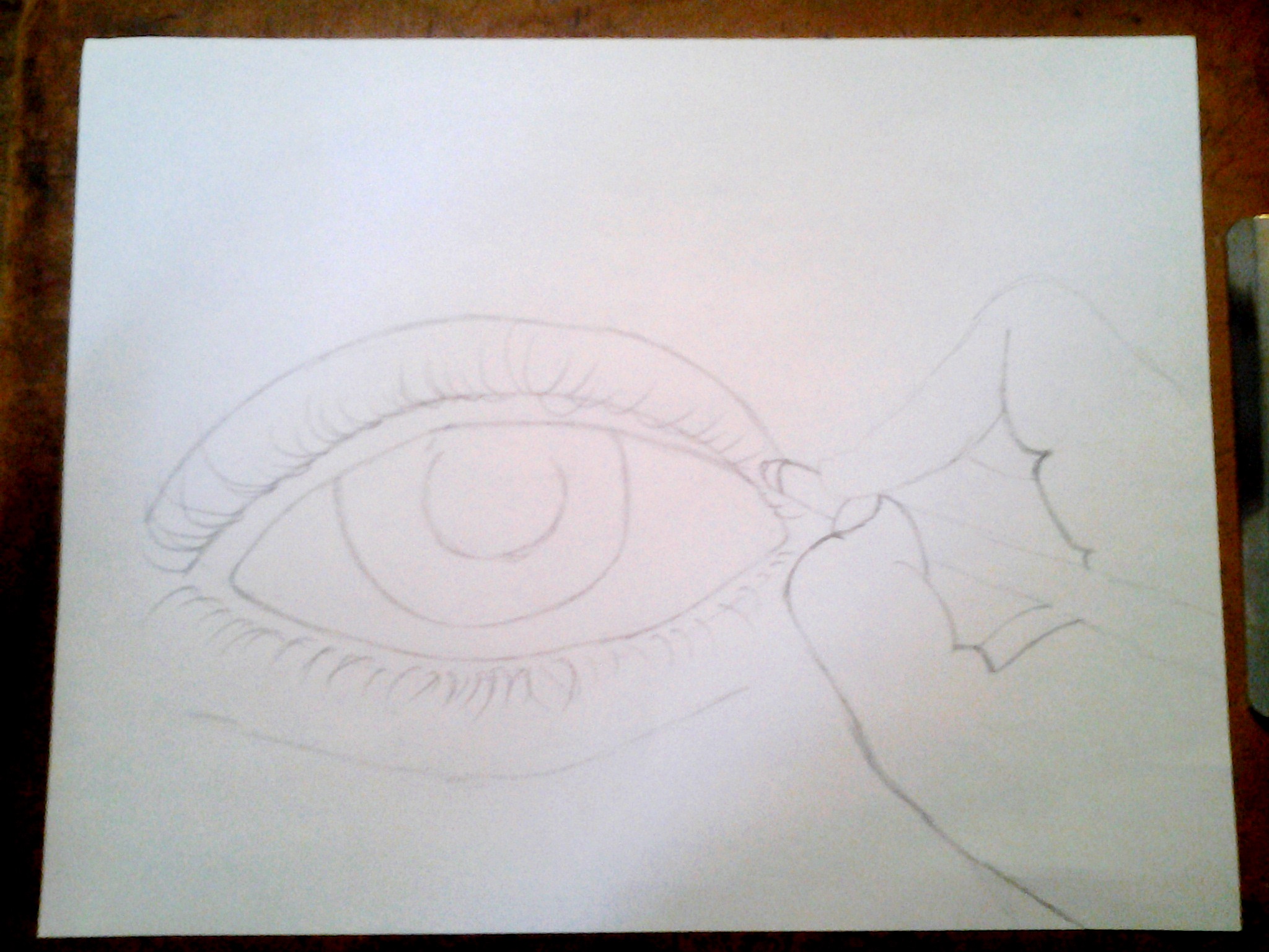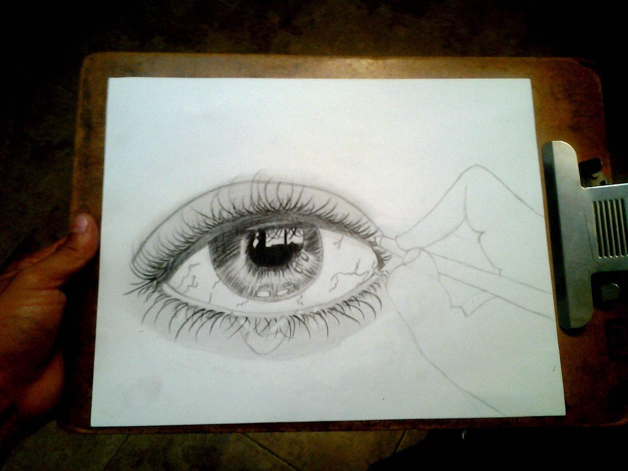 Comencé haciendo un ojo, desde sus parpados hasta su iris sin afincar mucho el lápiz ya que es el boceto.
