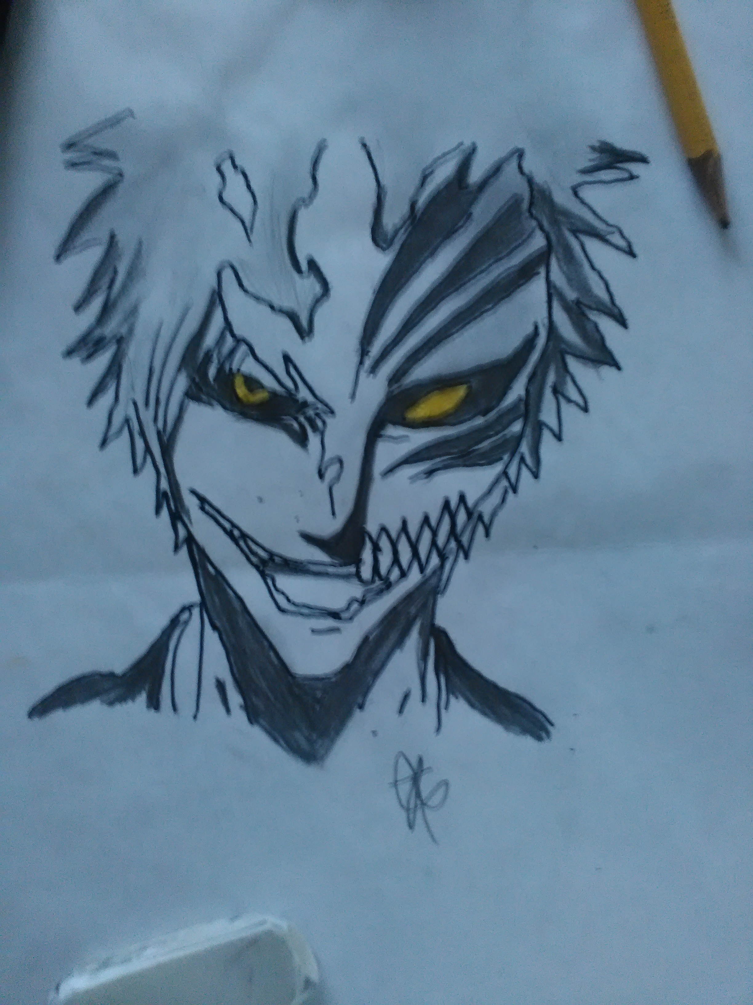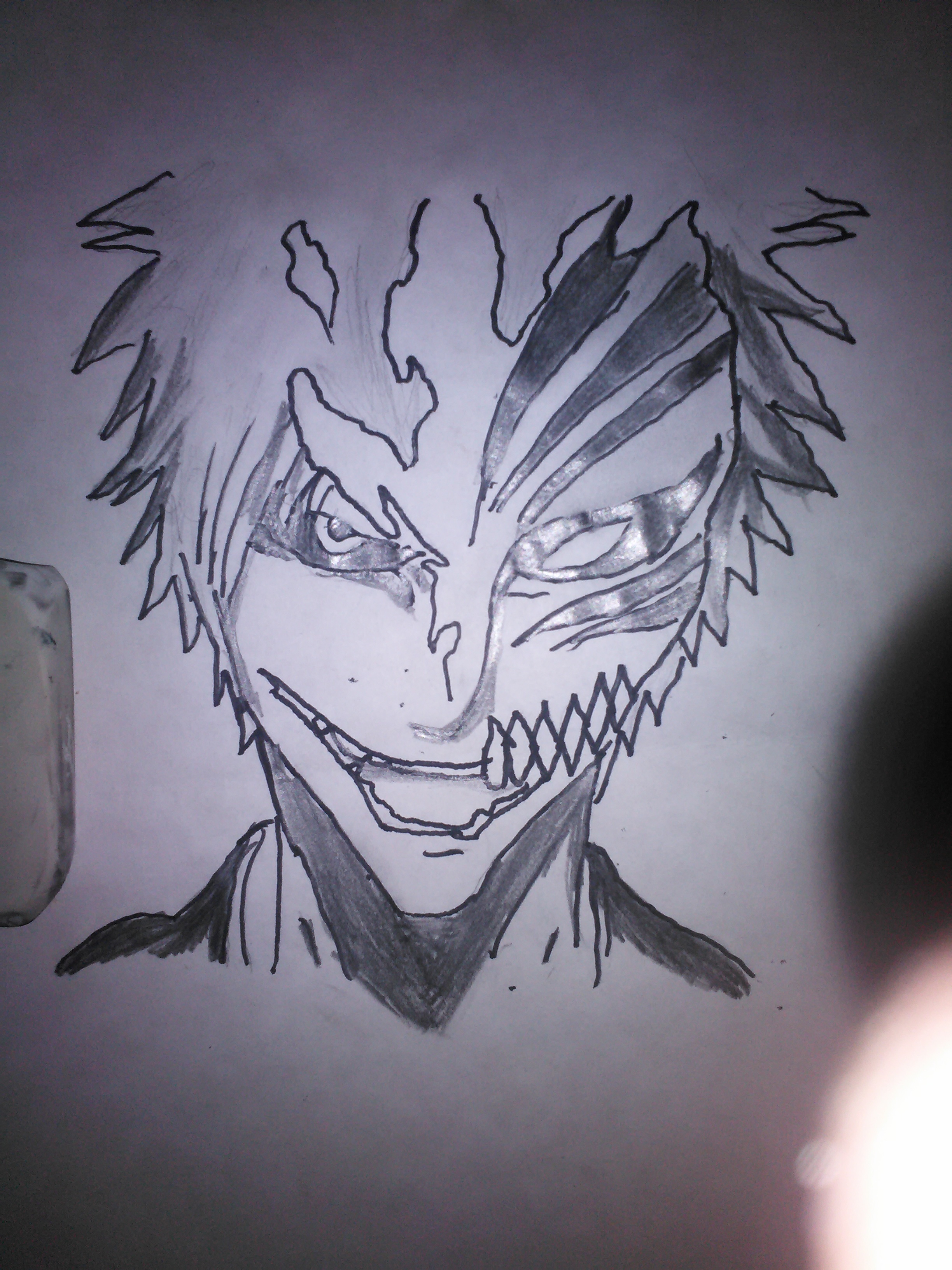 hola a todos, el dia de hoy me puse a dibujar un personaje favorito, este personaje pertenese al anime bleach,el protagonista se llama ichigo kurosaki, bleach fue uno de los primeros anime que vi cuando era niño.