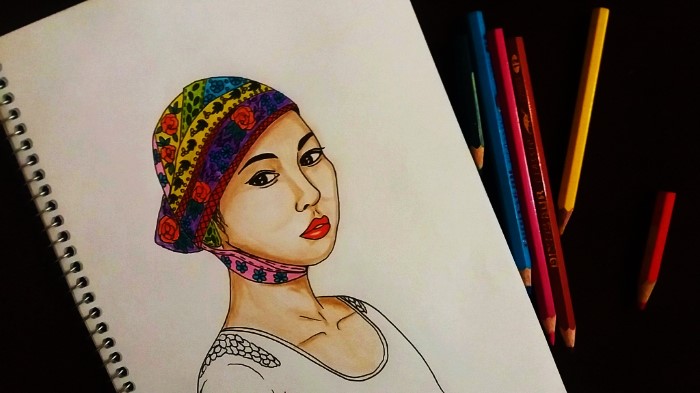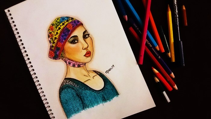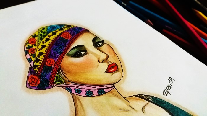 Hope you all doing well.. I want to share my new drawing's steps with you.. I start to draw portraits.. you know that I drew birds and used only black pencil in drawing them.. but in portraits I will use colored pencils, too.