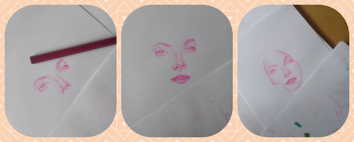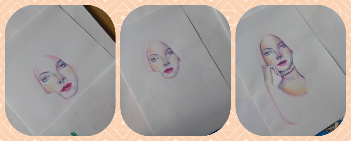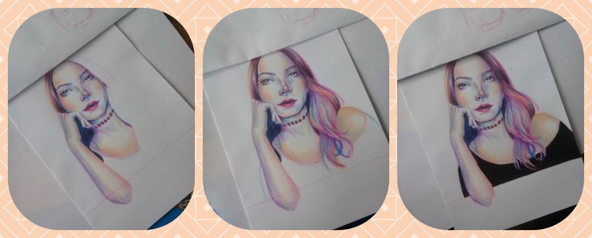 I made this portrait using 4 colors: pink, blue, yellow and a bit of black in the areas where it was most needed, for the end when I passed through the scanner I add a few touches with the photoshop, the only thing and that shocks me a lot is the fact that you can see the porosity of the sheet, but it is also a feeling found because I feel that it also gives a touch hahaha. I tried to make a frame and as always I failed using a rule, I do not understand why it is so difficult to me to make a straight line with a rule :(.