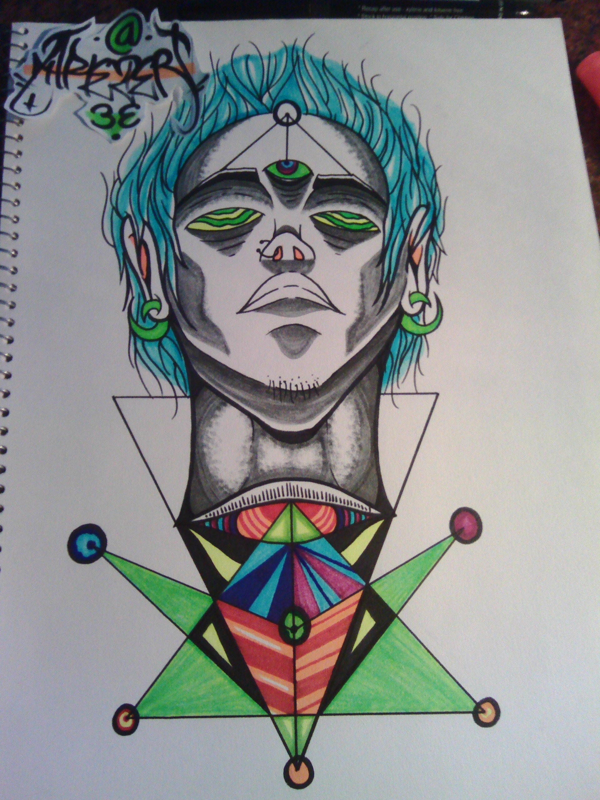Este dibujo me expresa a mi mismo, de en como puedo observar las cosas ahora, de como puedo sentirlas. Se trata de como tuve un cambio en mi realidad, un despertar por así decirlo, un despertar que me ha llenado de mucha creatividad e ideas, aprendí a ver dentro de mi y que era lo que realmente quería en la vida. Siempre me ha gustado lo psicodelico, ese arte tan raro me identifica mucho y siempre trato de que mis dibujos tengan ese aspecto, algo que de verdad haga alucinar haha y bueno que el arte siga explotando en nuestras mentes.