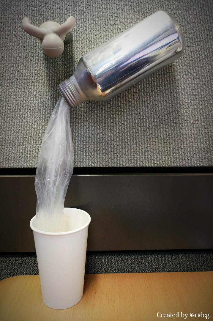 우산 씌우는 비닐을 사용해 자신의 사무실 책상 옆에 아트 워크를 제작 해주셨네요.