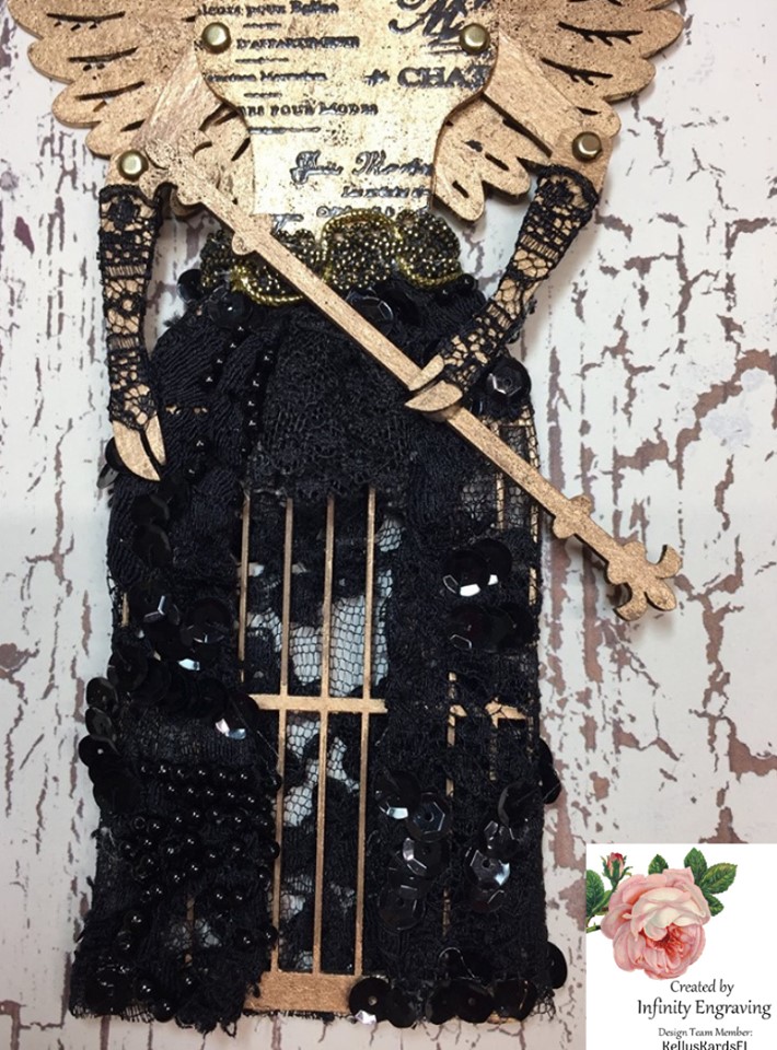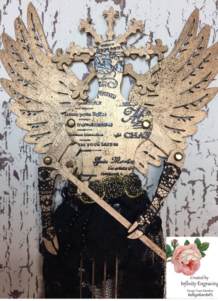 I'm here today to share this beauty I created using the unique chipboard mannequin chipboard kit from Infinity Engraving.
