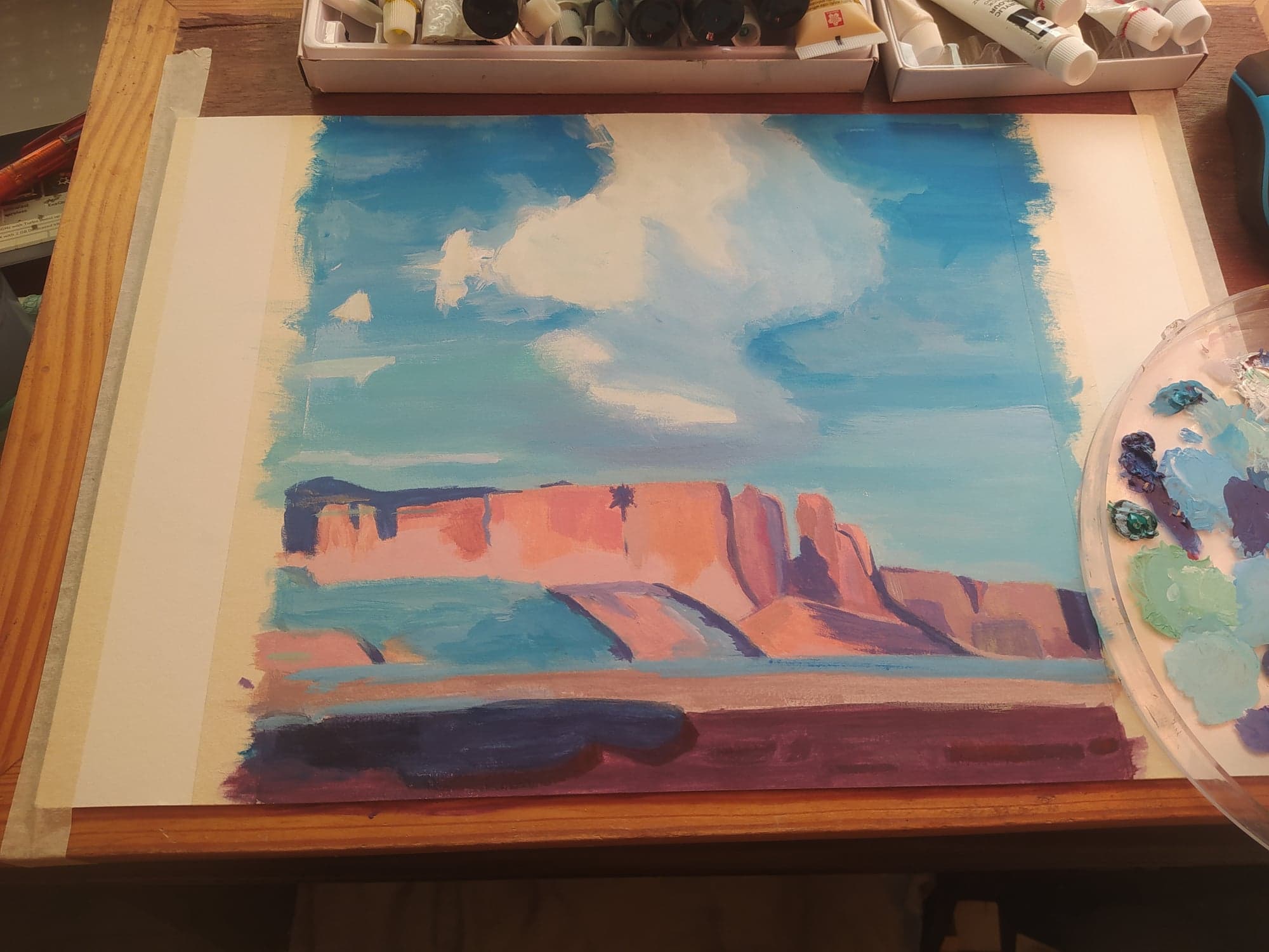 Hello @ARTSteemit Community! This is my first post here in ARTSteemit. I am still new to landscape painting and this is just my 2nd landscape painting work. But I wanted to share to you this artwork that I did inspired by the old master of art, Edgar Payne.