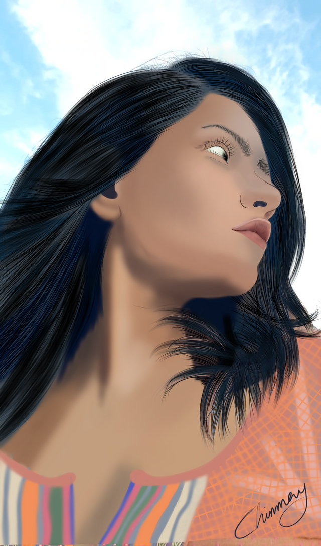 A very unusual angle of a beautiful girl. Thank you for the step-by-step process of creating your digital art.