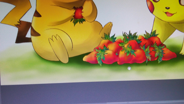 Anyways, to get on the painting/drawing in specific: firstly, the two variations of pikachus are just outright best depicted here and done with a care I like to see more off on this community. Secondly, nice colouring and facial work to make differentiable between the two variants. Thirdly, the love and consumption of strawberries are just: ahhhhhh! <<<<3333 - Fourthly, nice detail work with the patches of grass, shade-light work, strawberries in general and the two pikachus' stances. Lastly, just the compliments and playoffs of each element helps to unite while creating a sense of moreness that I just love.