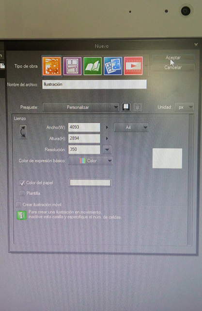 Ok, first lets open clip studio and create a new canvas, in this case the format will be an illustration with the follow characteristics: