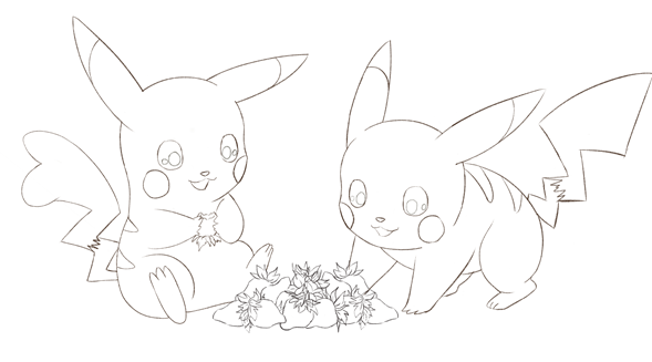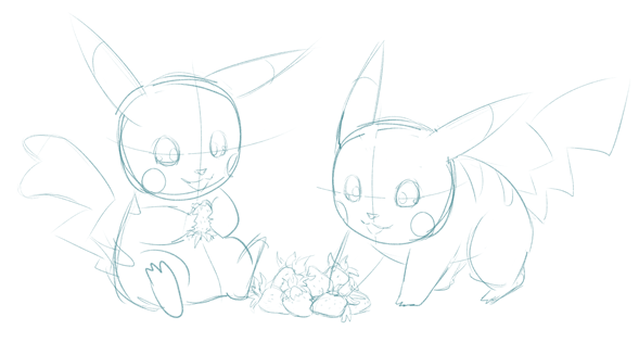 And draw a quick draft of both Pikachus