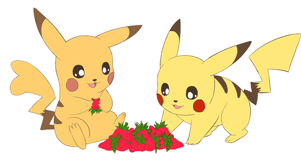 The grass you added was a perfect addition, and it made everything all come together nicely. What's more? The green color of the grass and the color of the Pikachus went so well together. I love that you didn't live out the details on the strawberry also, it made all look more realistic!