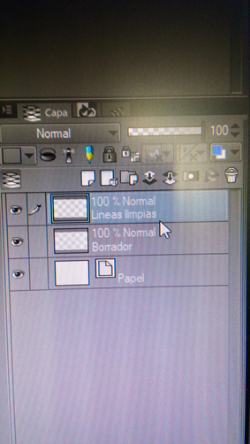 I put the new layer on top of the draft layer, then I lower the opacity to the draft layer and start to trace the clean lines in the line art layer.