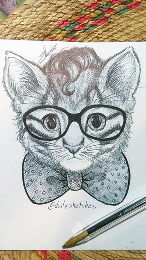 Stilish Cat - line art and ink process -