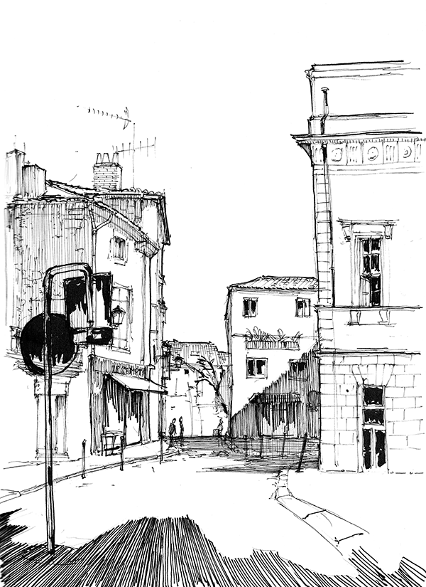 Your ink works are magnificent! I certainly enjoy looking at them, really nice. I love the warping perspective and your delicate cross hatch. Very beautiful :).