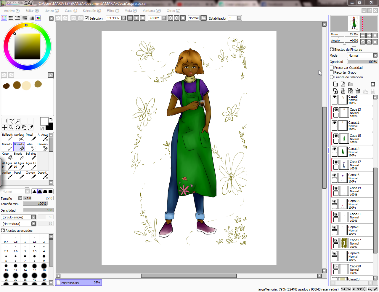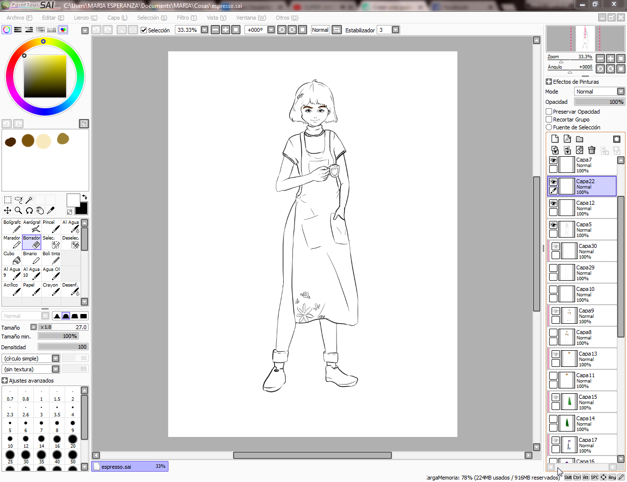 Of course, I also share with you some images of the process of this illustration I made in PaintTool Sai.