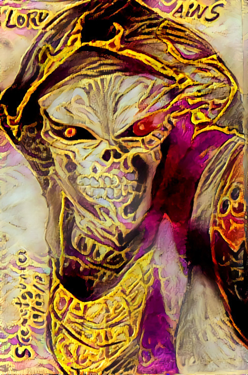 I decided to use the Deep dream generator to add color to this drawing of lord Ainz, because I want give a look more cool.
