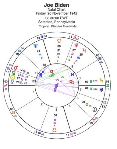 Case study 3: Joe Biden. He has Uranus at 2 Gemini 46, near his descendant at 3 Gemini 11. He’s funding Ukraine’s revolt against Russia (a bit like Louis XVI) and also helping Israel put down Hamas’ revolt (a bit like Indira Gandhi). He’s going to be one of those rare people who will experience their Uranus return in 2025. And …. ???