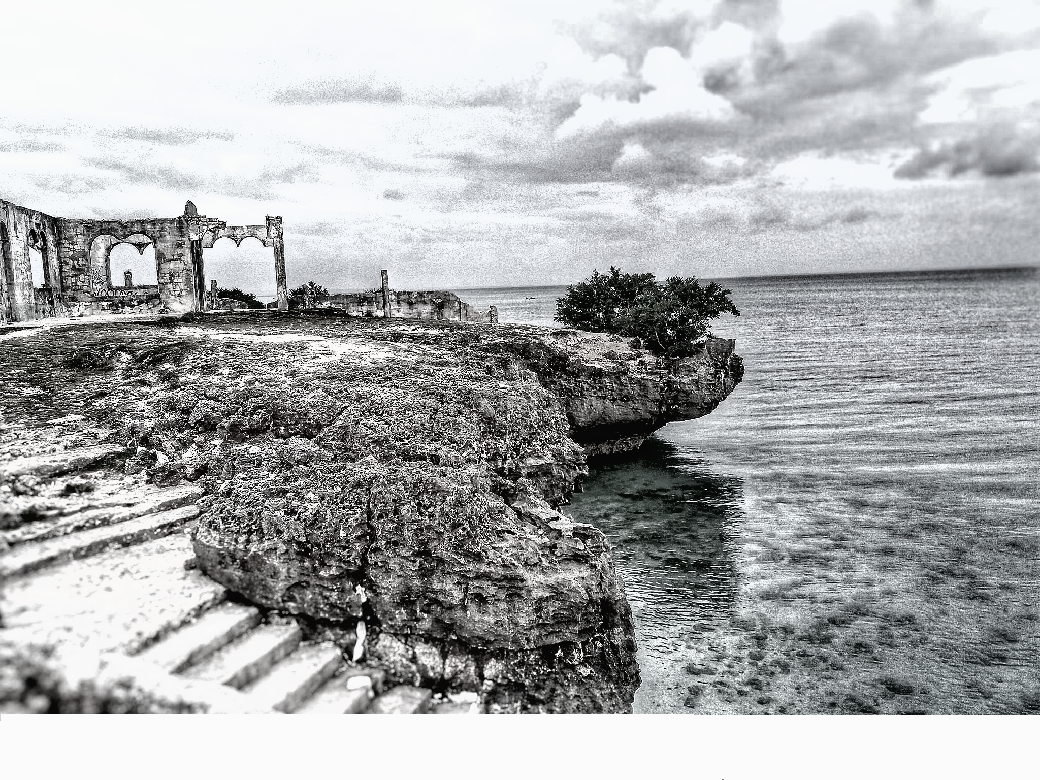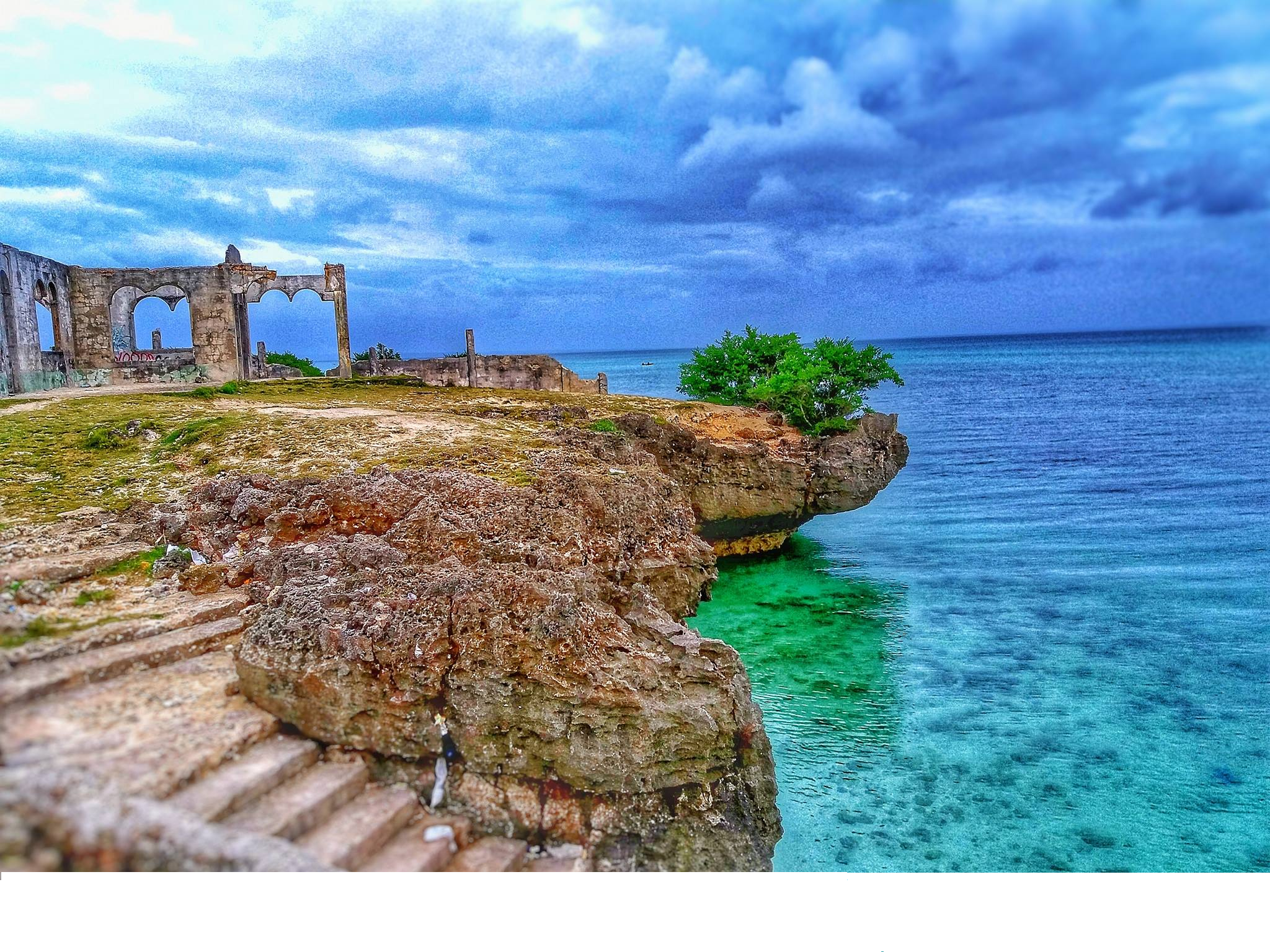 This photo was taken in Bantayan Island Cebu.It is a remained structure on the cliff near the beach .
