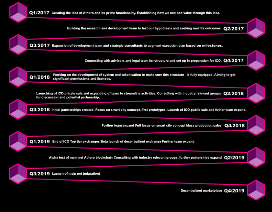Athero is a new blockchain protocol being developed and specifically designed and optimized for business and marketplace applications. The protocol will consist of a blockchain based “virtual machine” and defined modules of middleware software stacks, which operate outside the chain. It will support decentralized processes governed by smart contractsimplemented on the network.