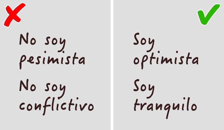 Un ejercicio que puedas hacer es confeccionar una lista de cosas que te gustan de ti o que consideras que te salen bien. La lista debe ser en positivo, no en negativo. Por ejemplo, debes escribir: “Soy optimista” en vez de “No soy pesimista”.