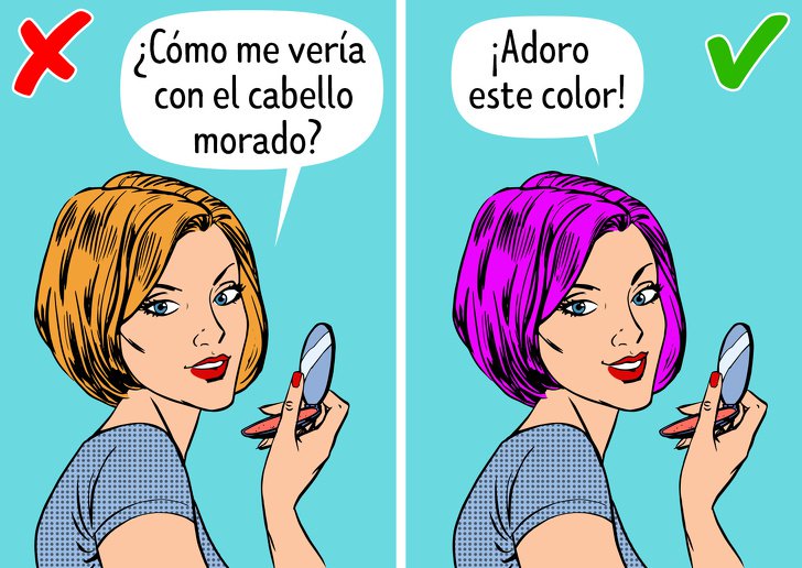 Por ejemplo: no te gusta tu color de cabello, pero siempre lo has tenido así, y te da miedo probar algo nuevo. O quieres cambiar tu guardarropas, pero crees que ninguna prenda nueva y moderna te quedará bien.