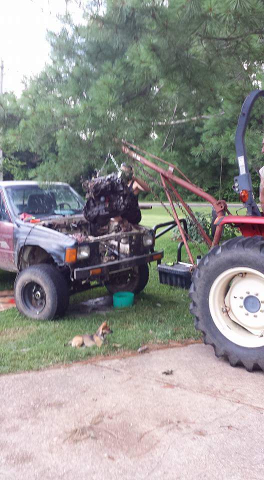 I always had to work with rented engine hoists that wouldn't wheel around much. That crane on a tractor would have been nice for me to move the engine around after it is out. I remember moving one engine around on my son's skateboard.