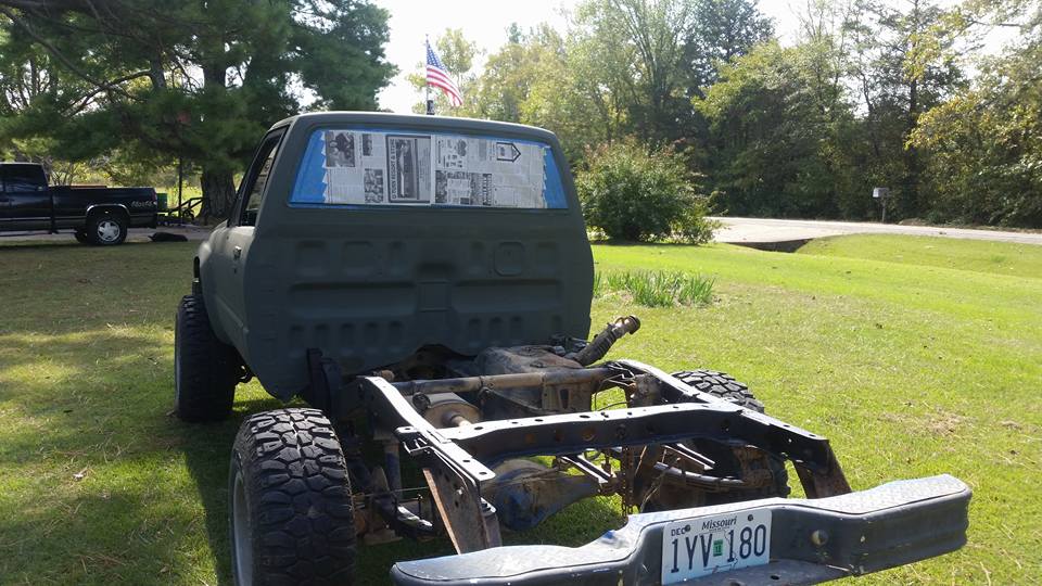 Since my bed was rusty and I planned on repainting the truck dad and I pulled the bed so it would be easier to paint the cab.