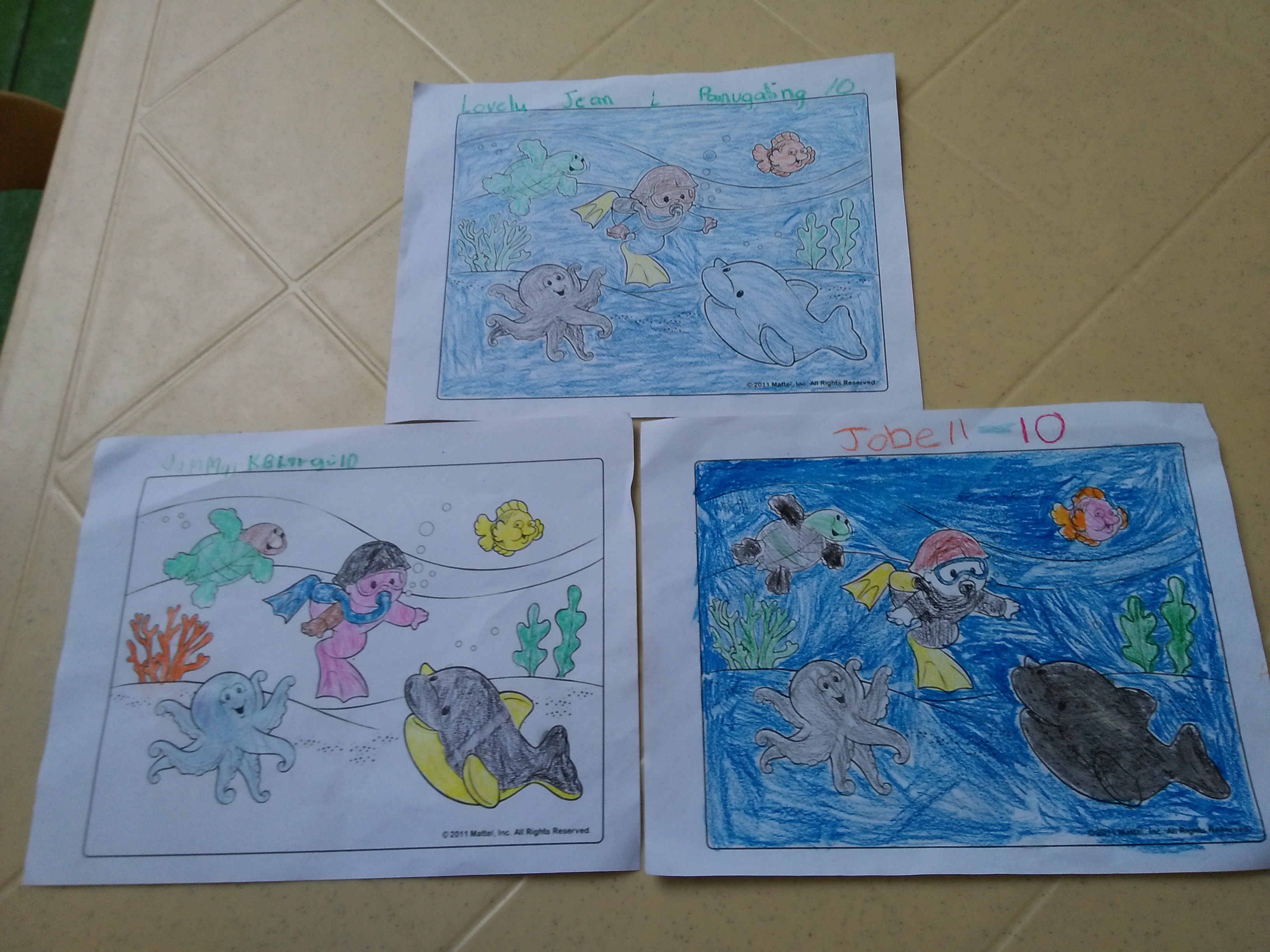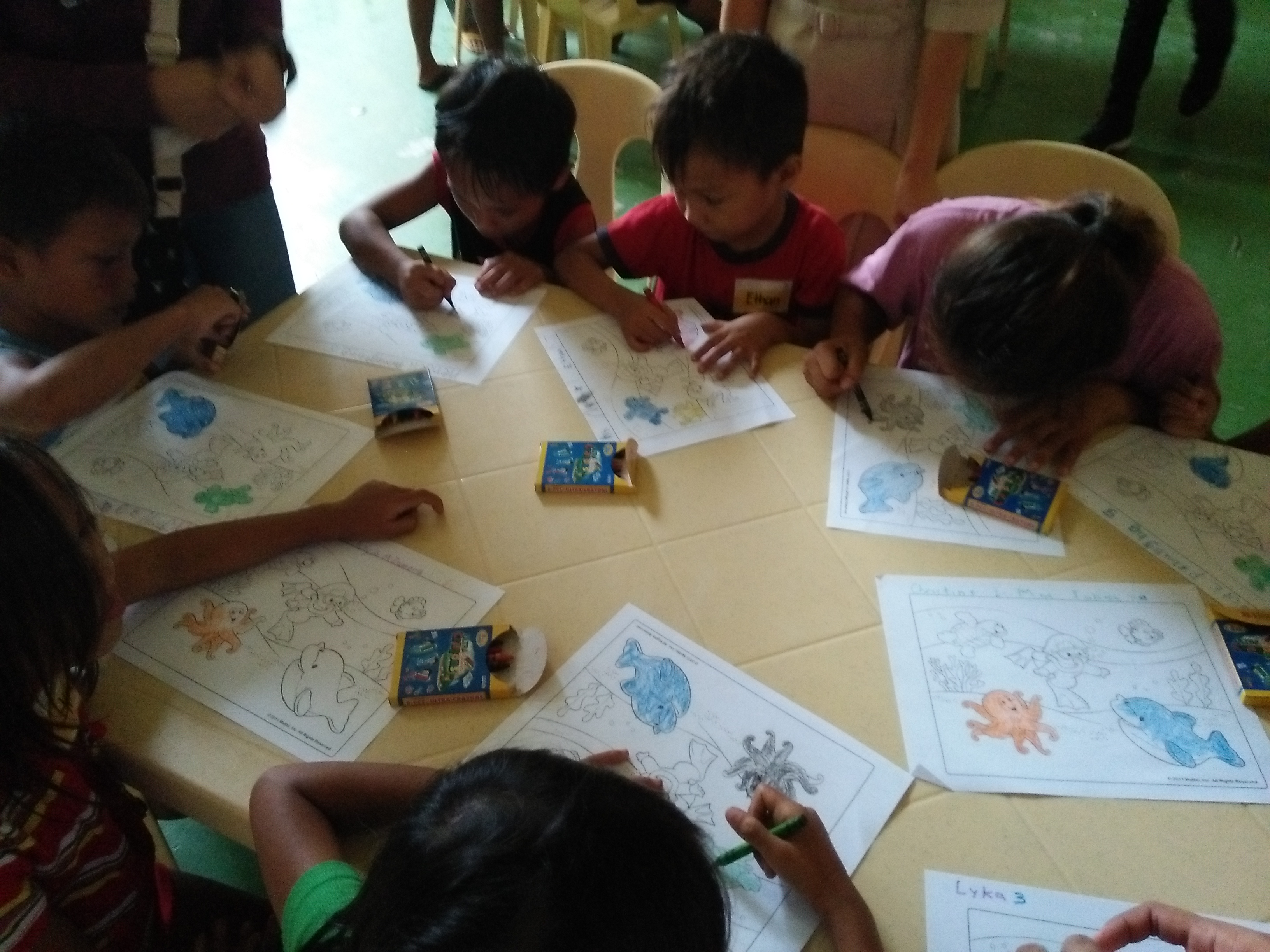 So,We start our activity by giving the kids a sheet of bond paper where in they will put colors on the drawing.They are very excited to do this.