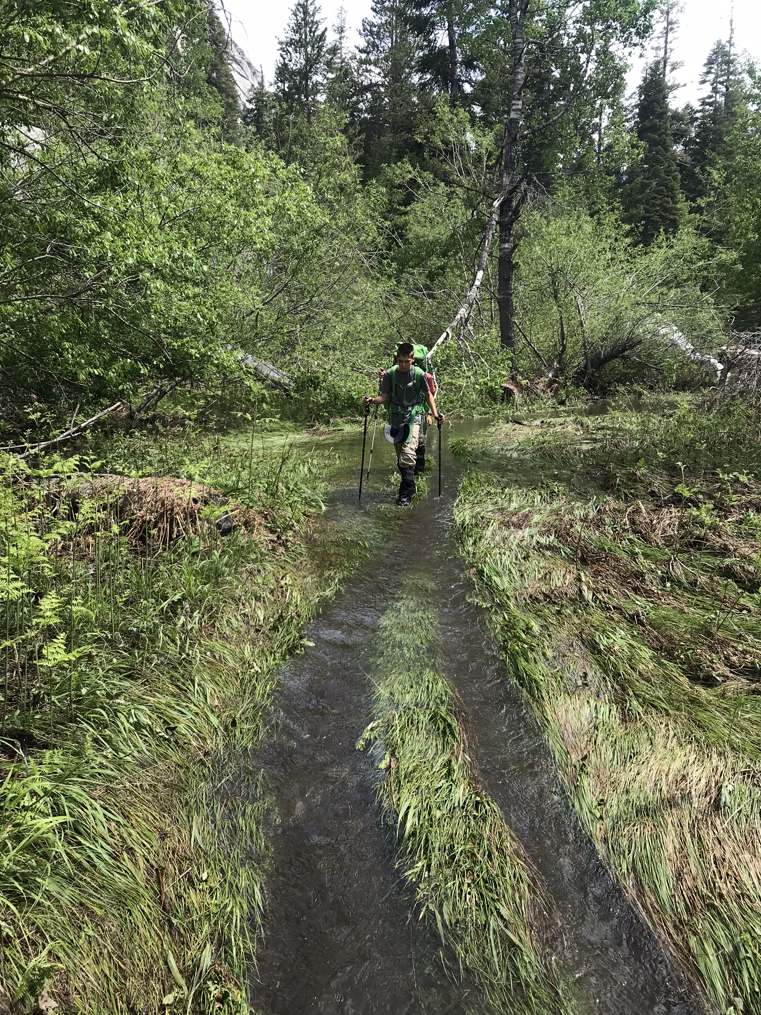 We made it across this section last year but this year it just seemed too sketchy. I backpack with my sons (11 and 13, yes they carry all their own gear plus some!) so I am extra careful with them.