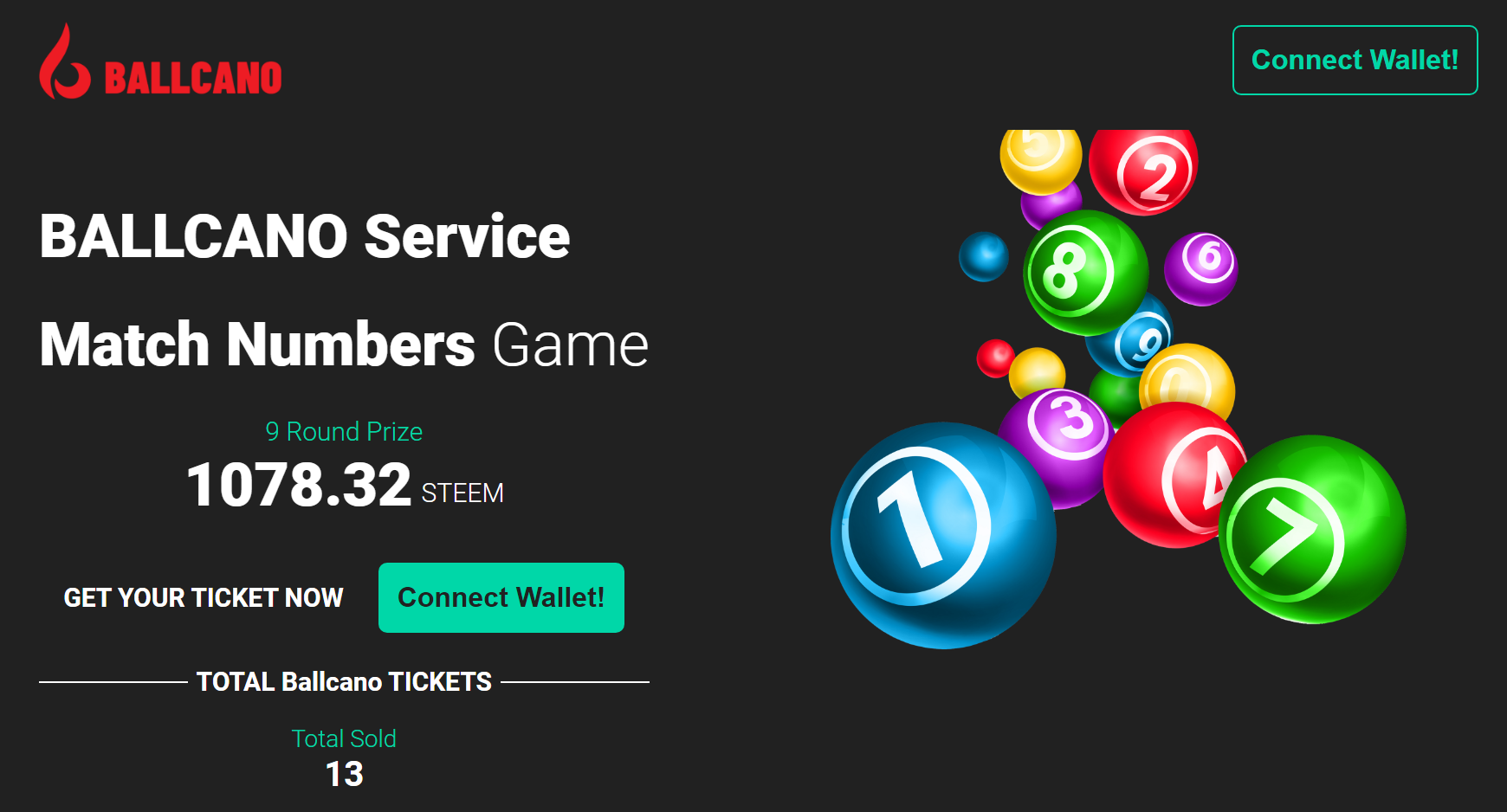 When you visit the Ballcano website, link your STEEM wallet and purchase a Ballcano ticket, you are automatically entered into the Match Number Game round.