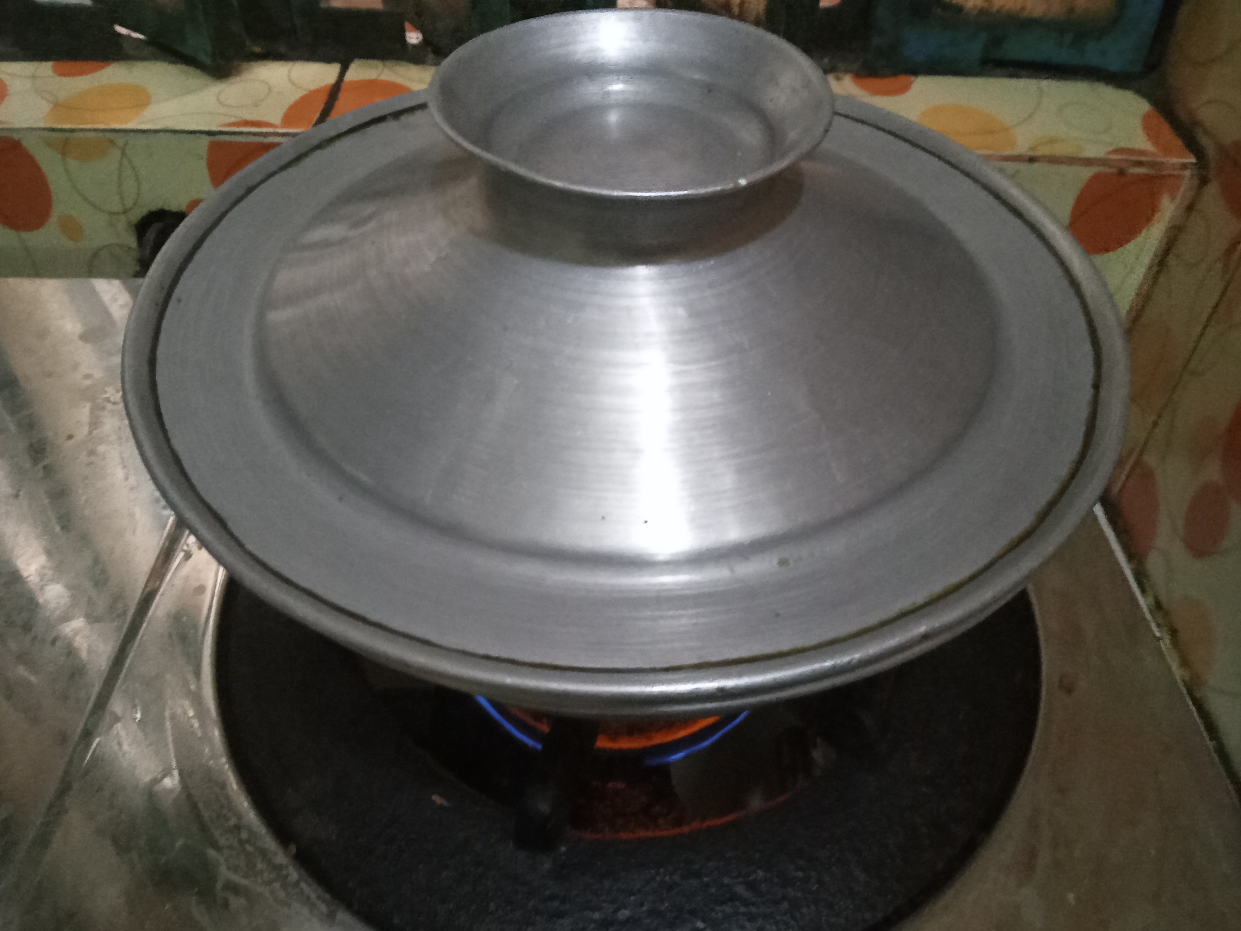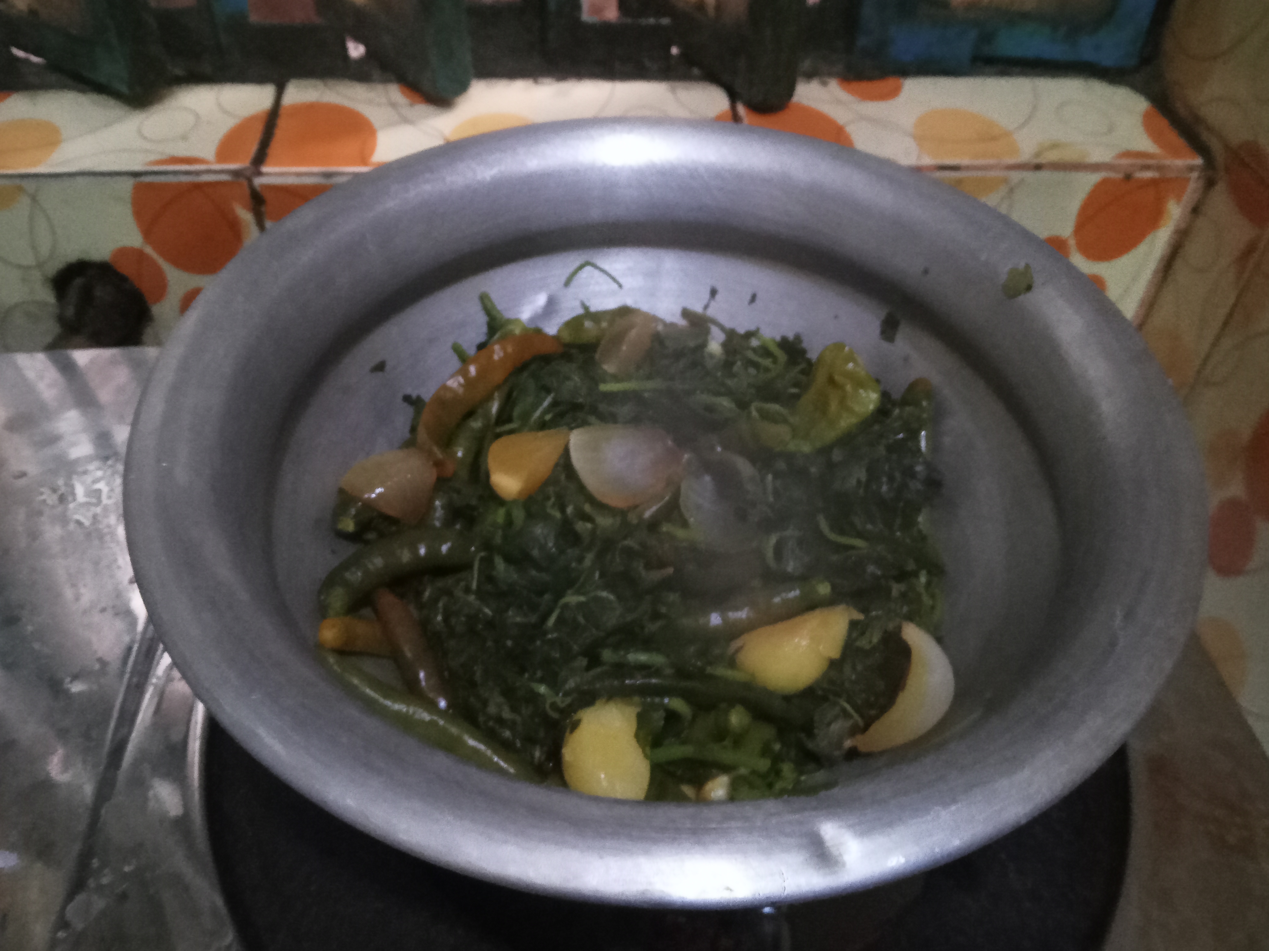 দেখুন এগুলো সিদ্ধ হয়ে কমে গেছে, এখন খুব অল্প দেখাচ্ছে। আমরা পাতিলটিকে নামিয়ে ফেলবো।