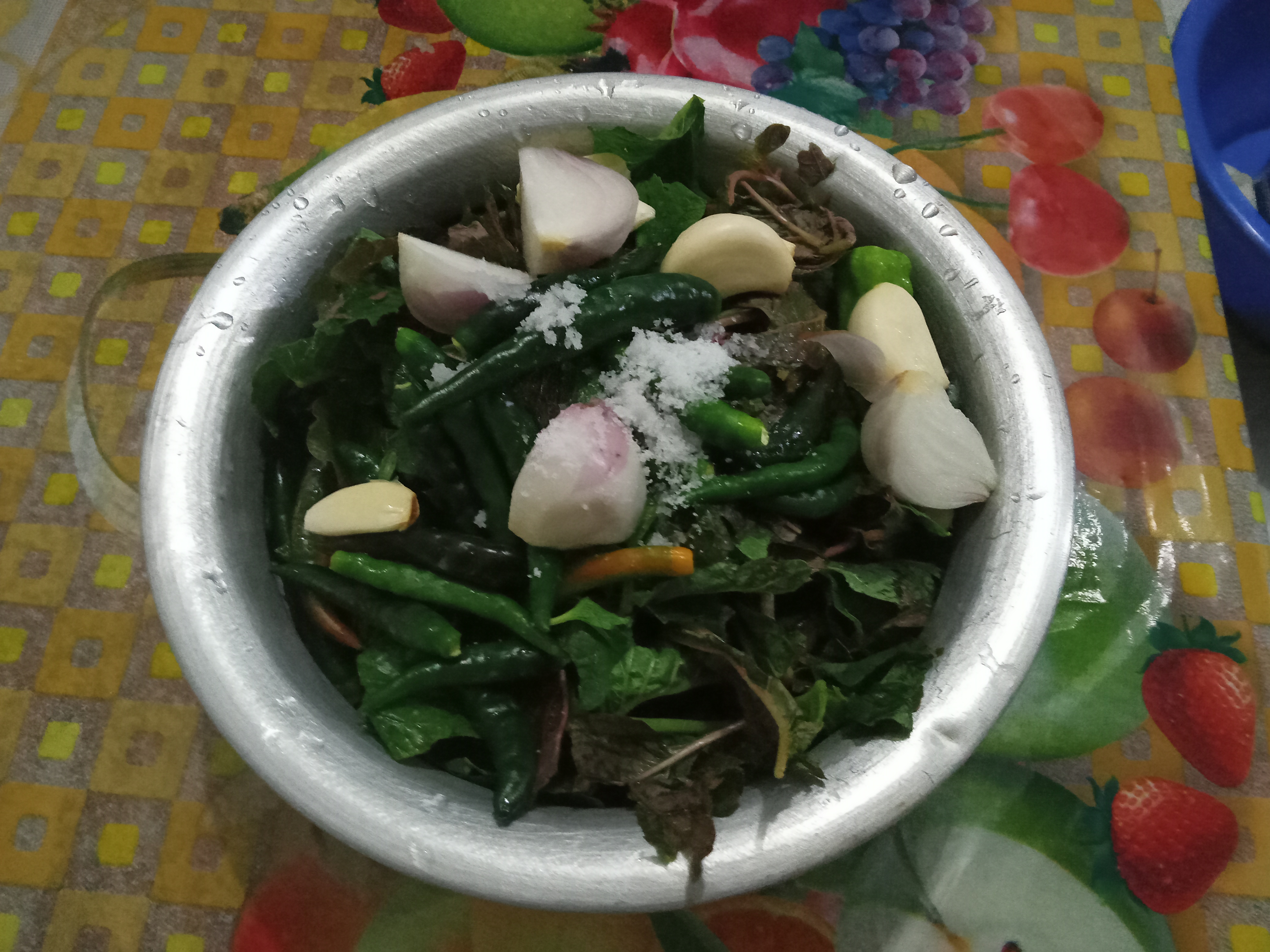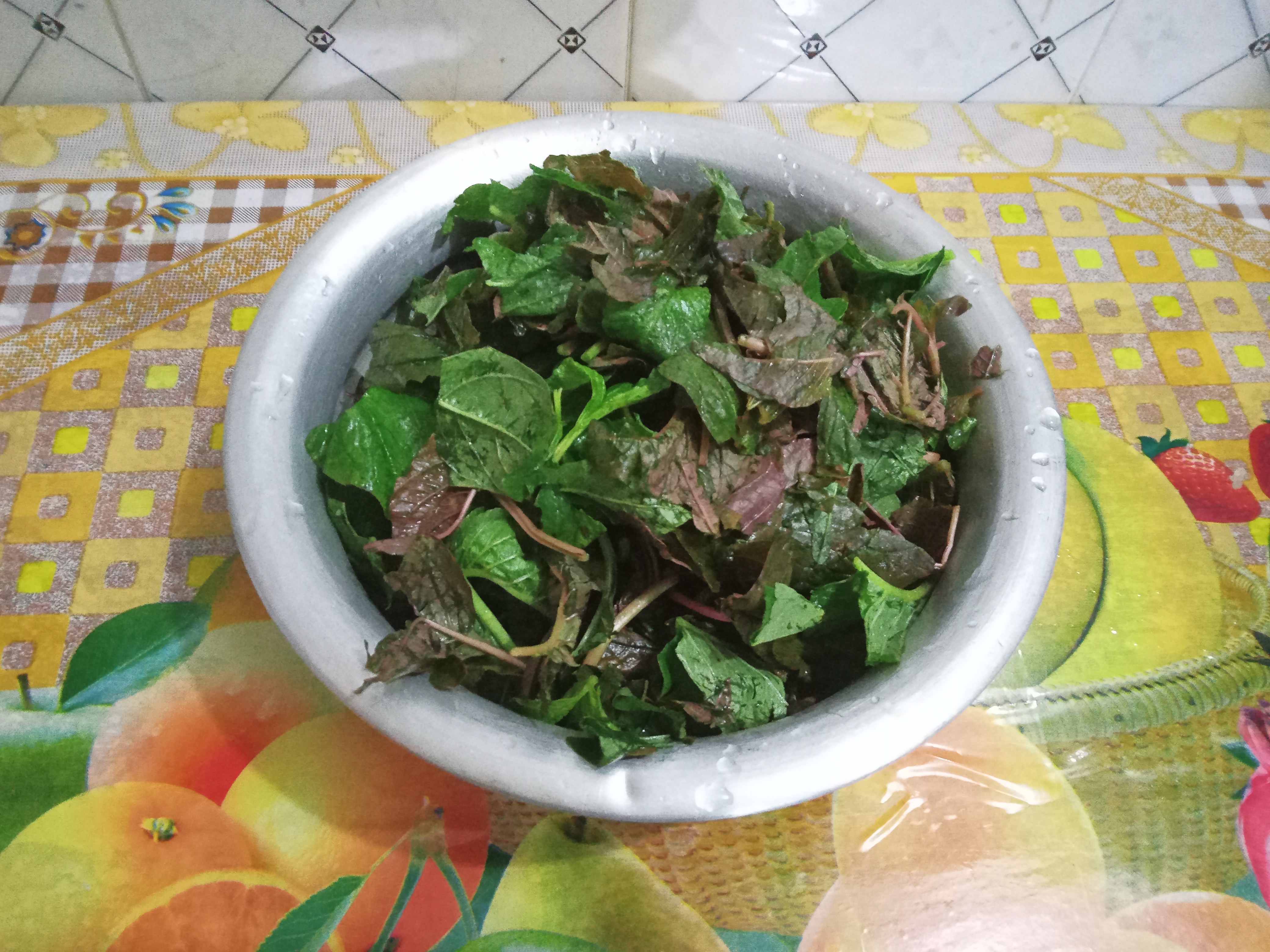 প্রথমে আমরা শাকের পাতাগুলোকে ভালোভাবে পরিস্কার করে নেব এবং ছোট ছোট করে কেটে নিবো।