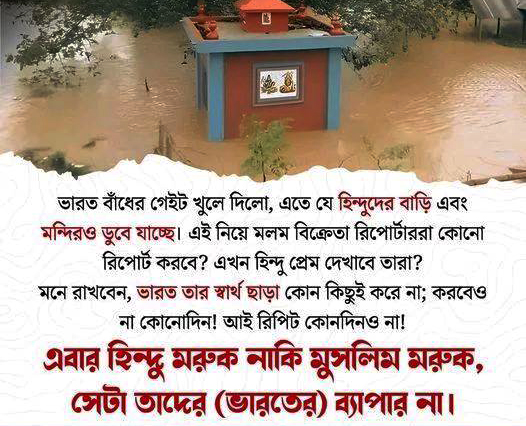 ফেনী, নোয়াখালী,কুমিল্লা সহ ও লক্ষ্মীপুরের মানুষদের অবস্থা ভয়াবহ, পানির স্রোত ও অনেক ঘরবাড়ী ভেঙ্গেগেছে বা তলিয়ে গেছে। ফেনী আর কুমিল্লা মিলিয়ে তিন লাখ পয়ত্রিশ হাজারের মত হিন্দু ভাইদের বসবাস। বন্যার পানিতে আপনাদের মন্দির ক্ষতিগ্রস্ত হবেনা?