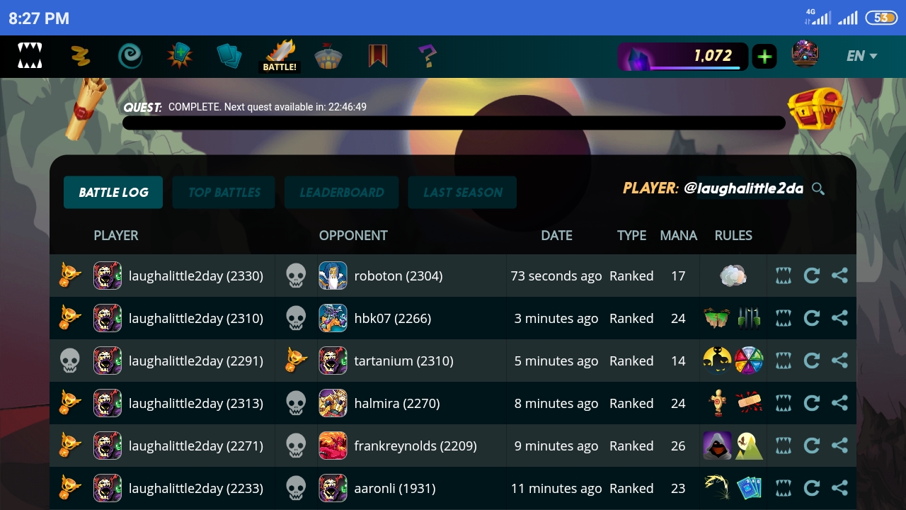 Just completed today's quest without too much effort on Gold 2. It's the death quest again😁 3 days in a row and I don't mind it at all, because my dragon summoner is in halt time. The delegator changed lvl 3 Daria with lvl 4 just to adjust it with my silver deck.