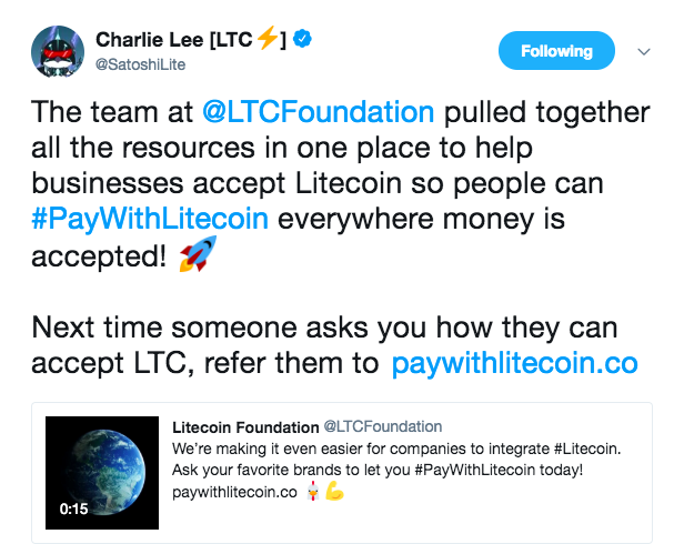 Litecoin [LTC] Foundation brings #PayWithLitecoin to your door step