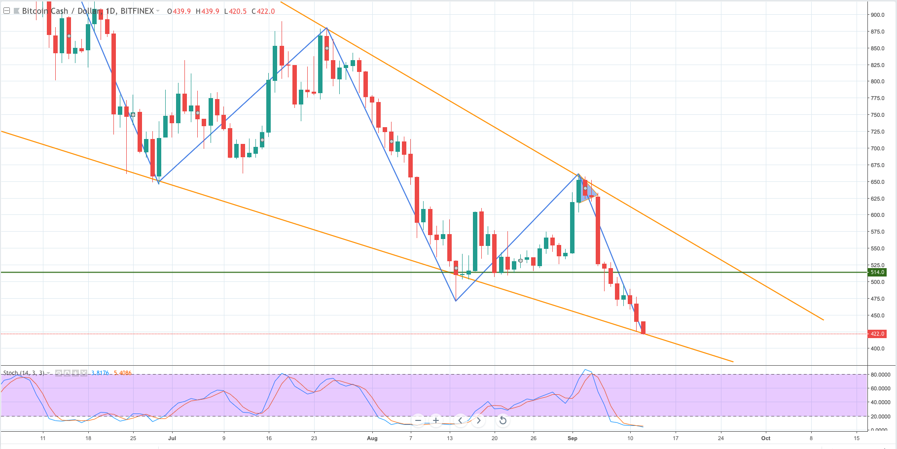 Biểu đồ D1 giá Bitcoin Cash (BCHUSD) ngày 12/09/2018