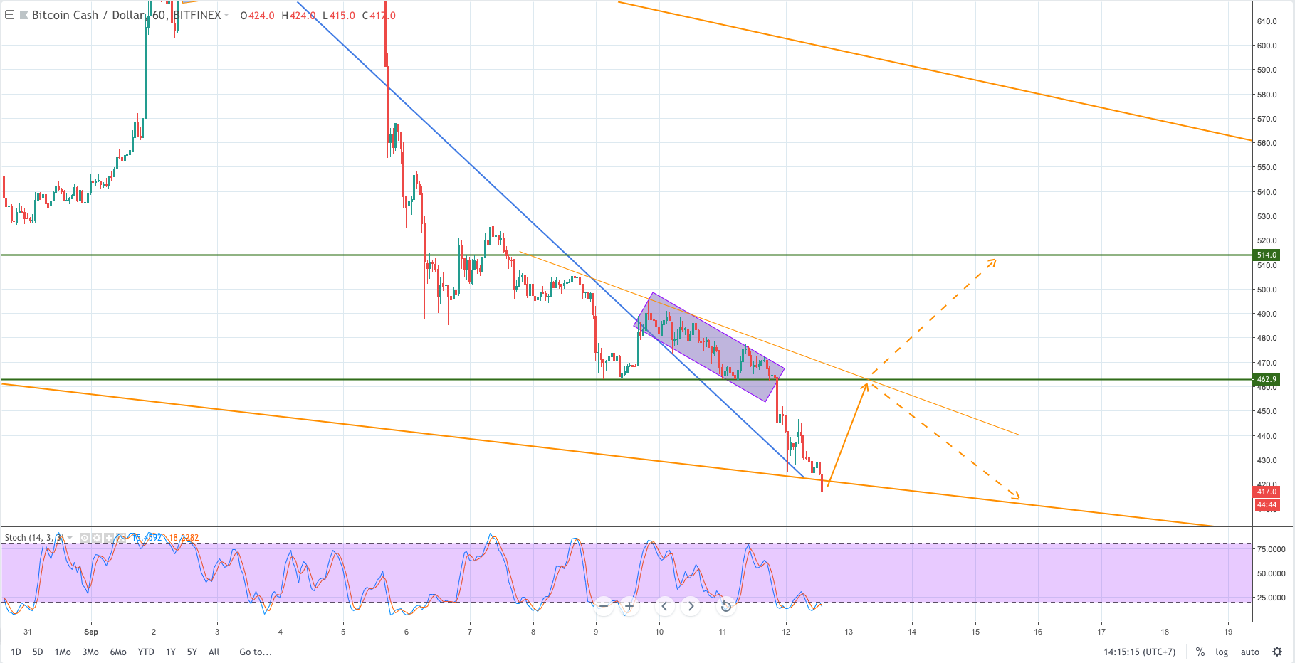 PHÂN TÍCH VÀ DỰ BÁO BITCOIN CASH (BCHUSD) THỨ TƯ NGÀY 12/09/2018: HÌNH THÀNH ĐỘNG LỰC TĂNG