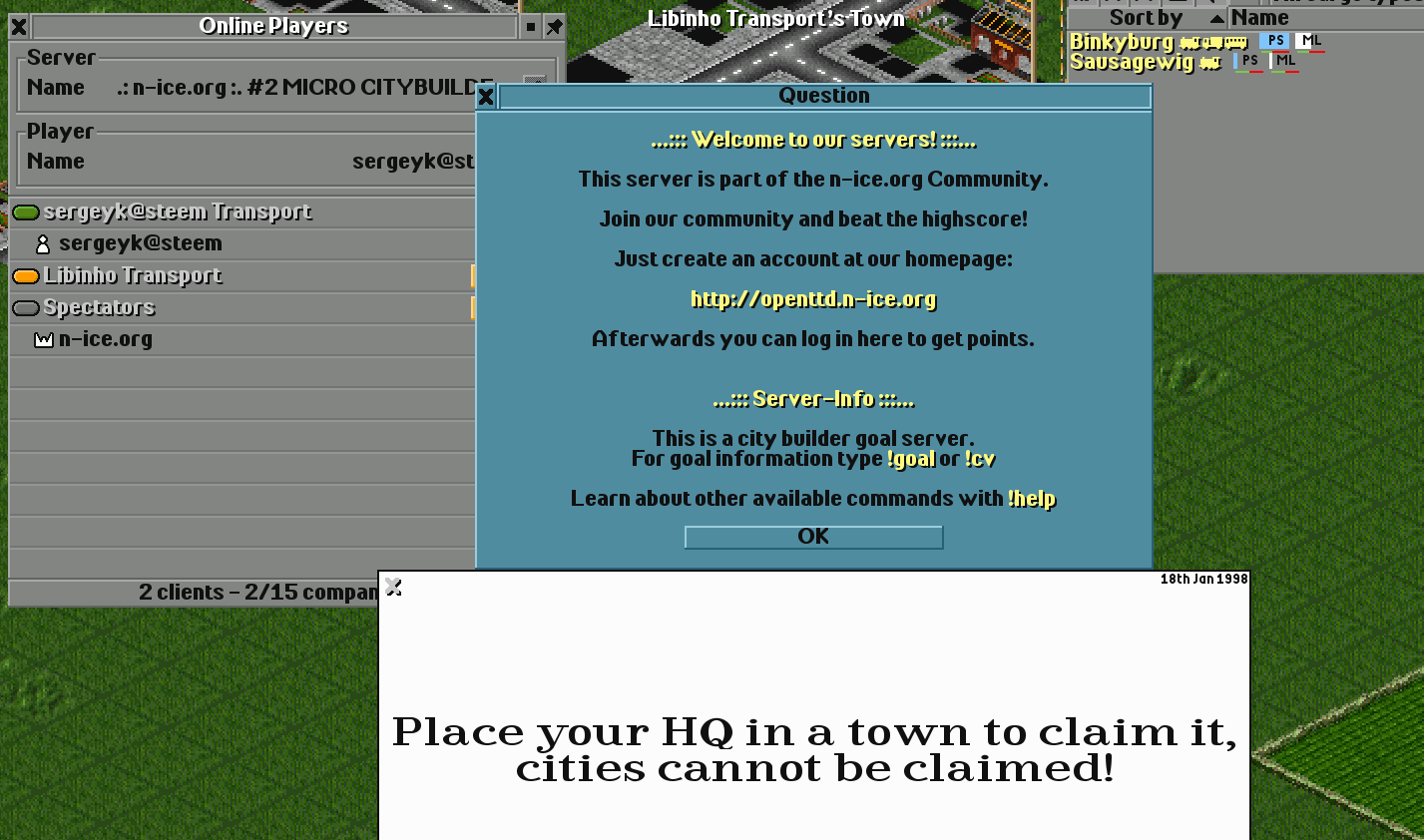 The first task – only explore the players on the server. Look at their town, their transport. Because the server often restarts, this task can be done in several steps. First just connect and watch, next connection do task 1, next connection do task 2–3.
