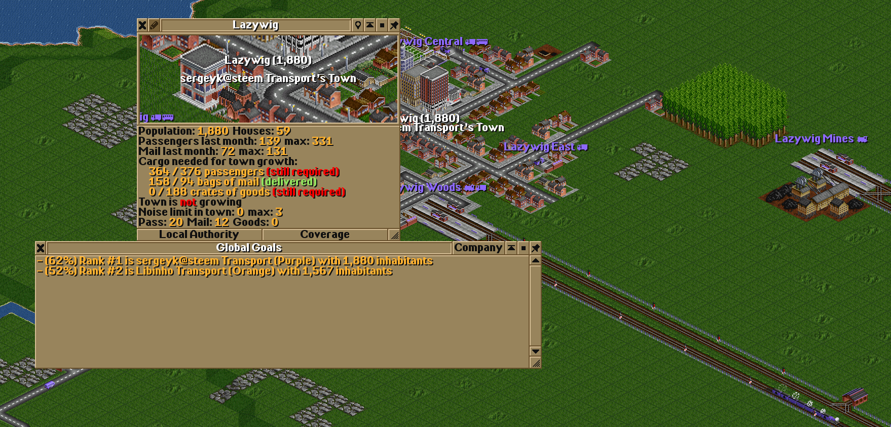 As you can see, my town grew to 1880 people even without goods, and I even passed the other player. But for further growth, goods are necessary.