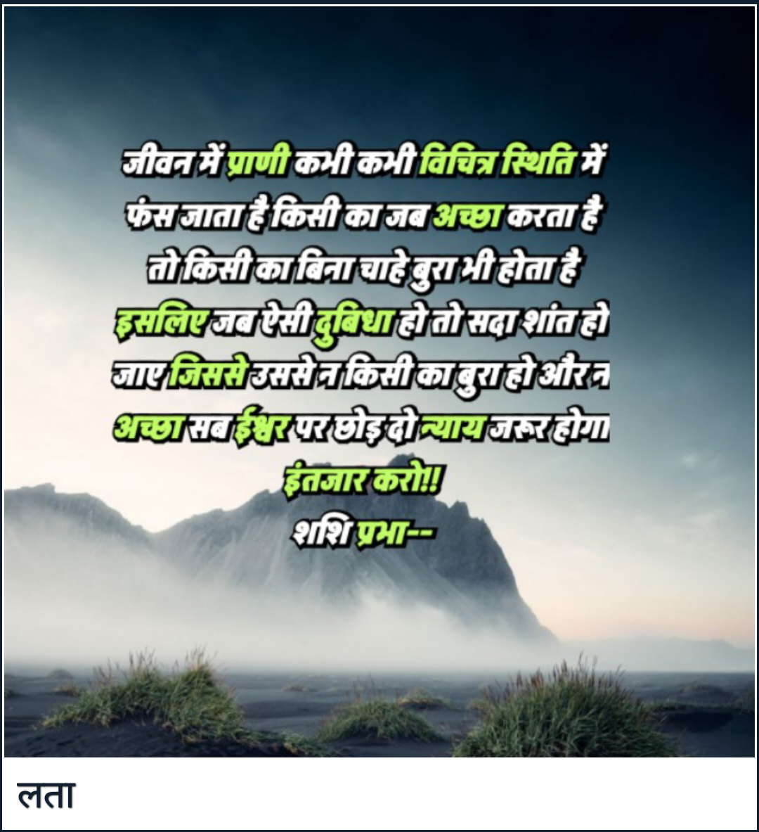 जीवन में प्राणी कभी कभी विचित्र स्थिति में फंस जाता है किसी का जब अच्छा करता है तो किसी का बिना चाहे बुरा भी होता है इसलिए जब ऐसी दुबिधा हो तो सदा शांत हो जाए जिससे उससे न किसी का बुरा हो और न अच्छा सब ईश्वर पर छोड़ दो न्याय जरूर होगा इंतजार करो!!