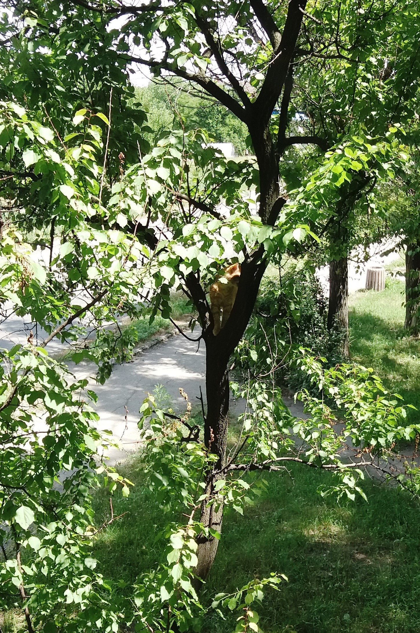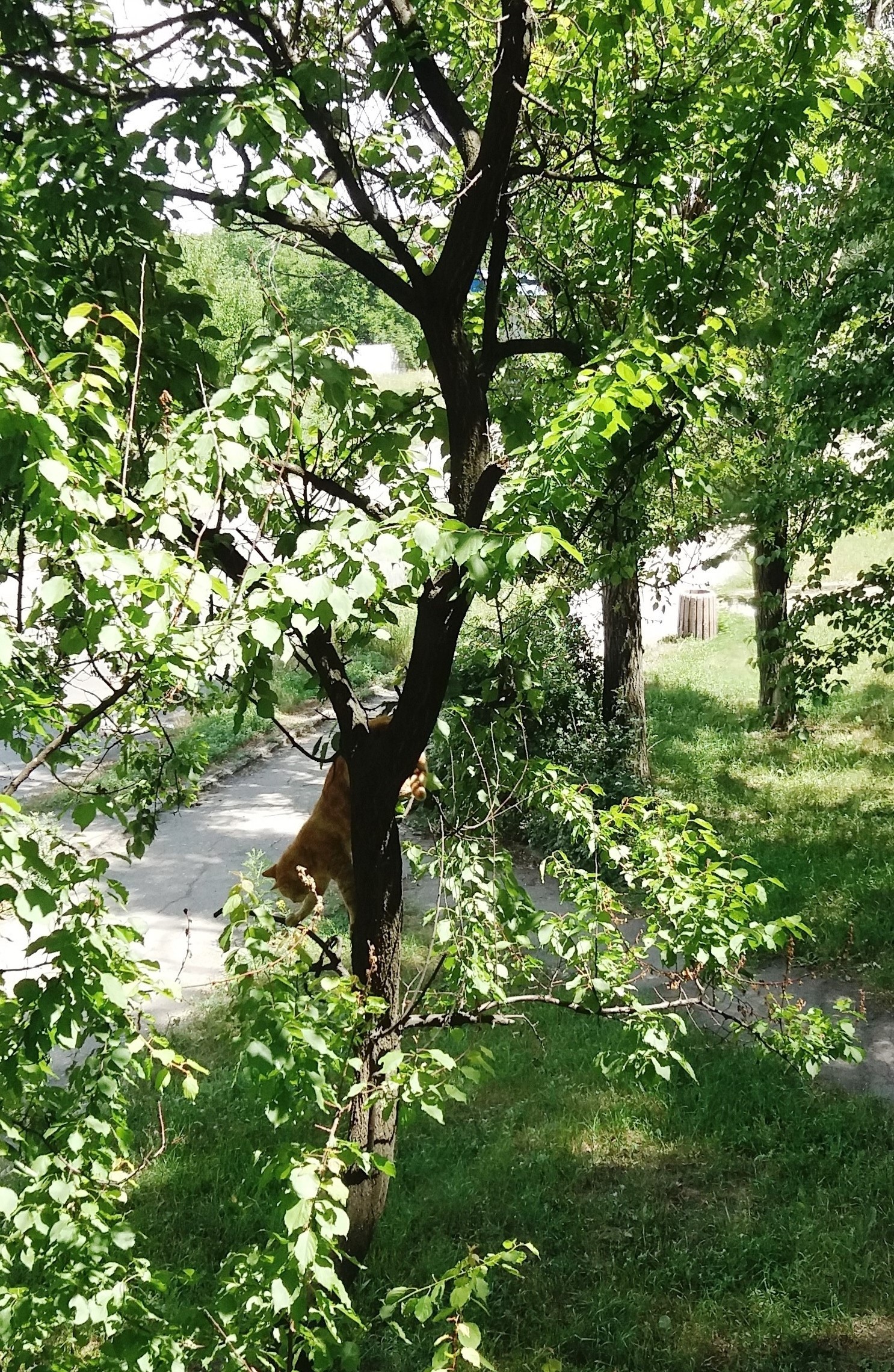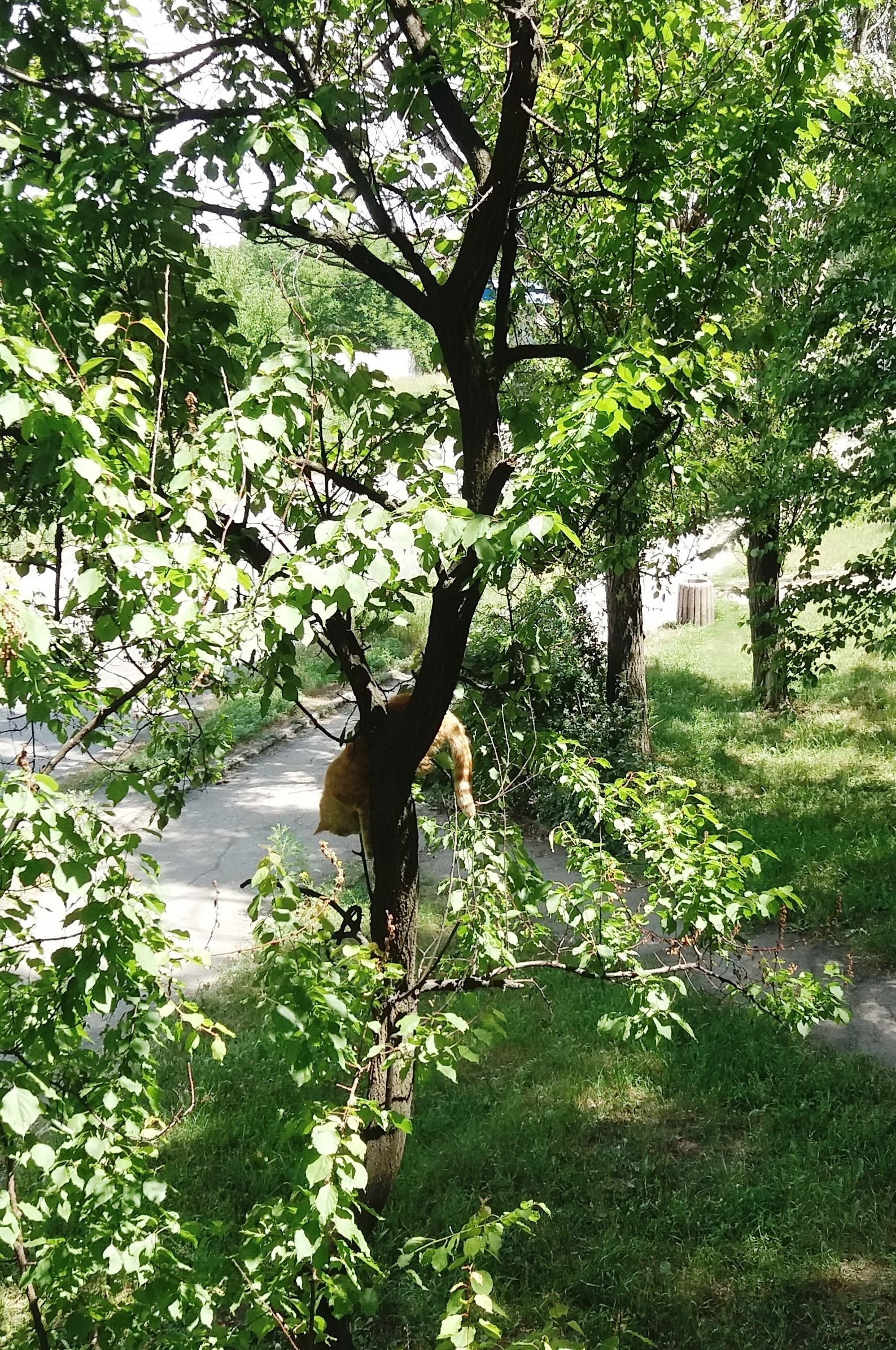 I have a work desk on the balcony. Here I saw a cat. When I noticed him, he quickly got off the tree and ran to me for food. He is an acrobat.