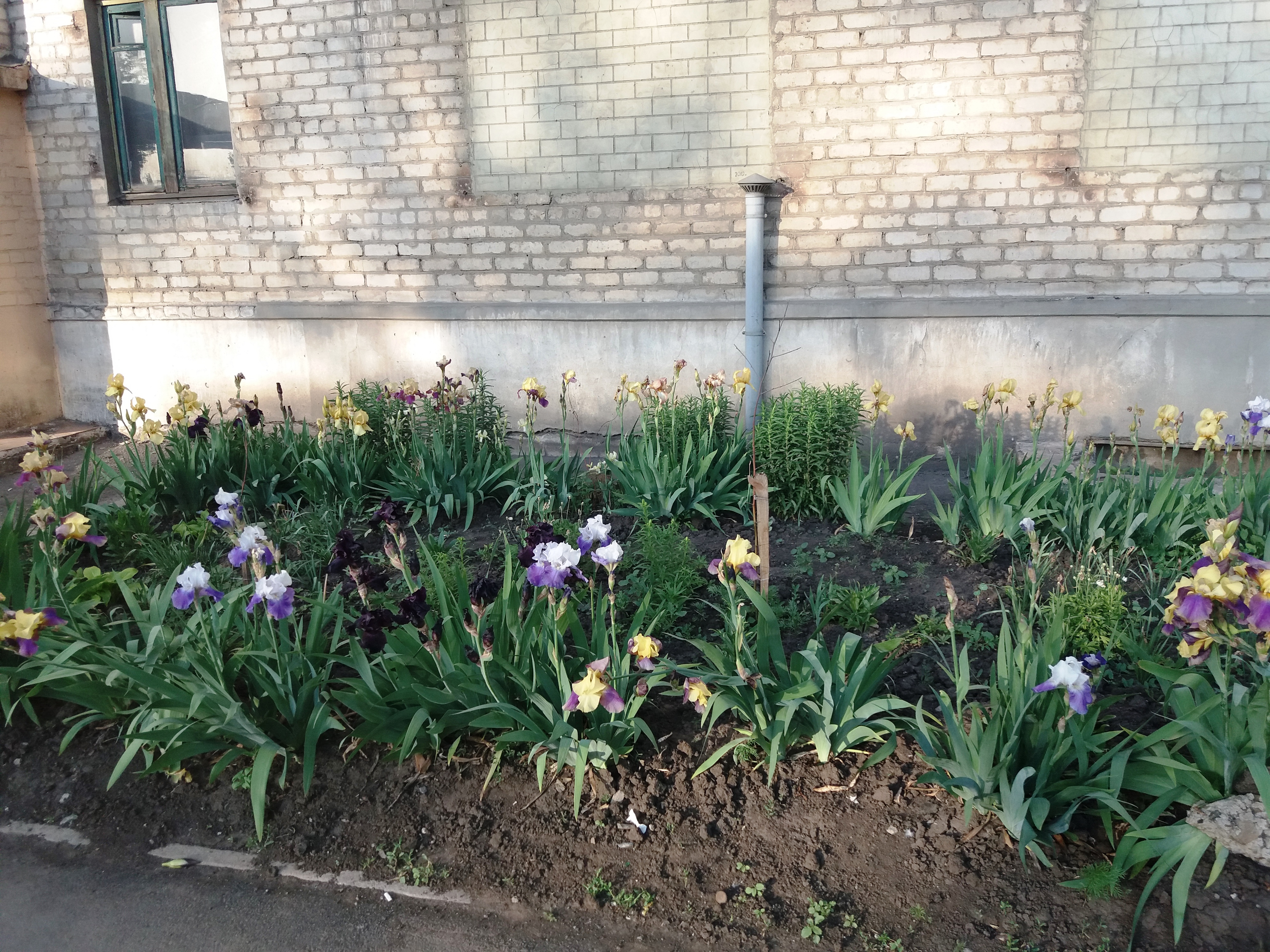 Вау, как все красиво! И акация, и ирисы, и мозаика, и рыжий кот-акробат!)