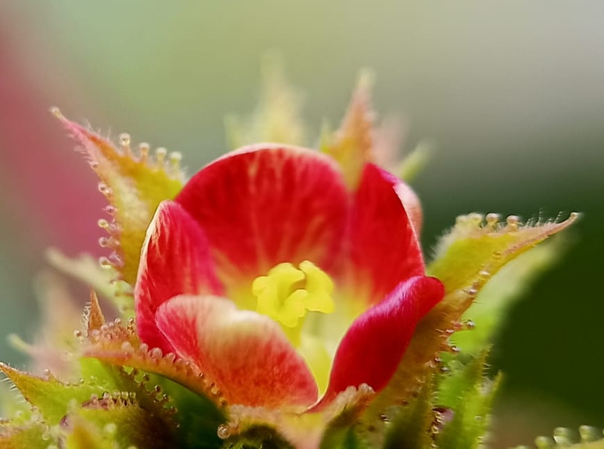 Greetings with the spirit of creative souls to creative friends in the Beauty Of Creativity Community. See you again with me @dimanrama in a Creative Photography-photography post. With Macrophotography, it makes the object of photography look more beautiful and charming. On this occasion I would like to present the results of my photography in the form of a macrophotography of a wild red flower with a yellow pollen variation.