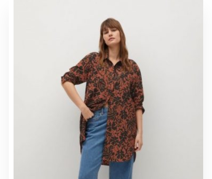 Long polyester shirt, Violeta by Mango. Practical, this printed blouse can be worn as a dress or over pants, unless you prefer to tie it at the front or unbutton it, by putting it on with a t-shirt. In short, the possibilities are endless! $ 100