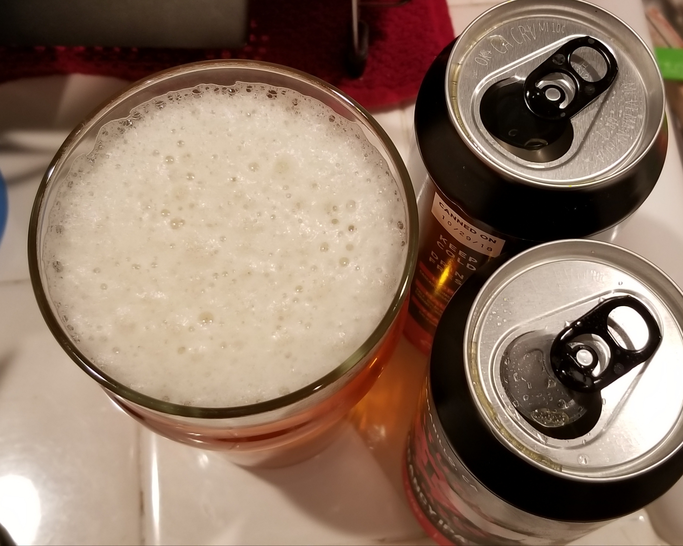 First off, this beer has a beautiful color. And, if you choose to purchase some and bring it home from the tasting room, the only options are a growler, or 4 pack of 16oz. cans! 16 ounces each? Don't mind if I do!