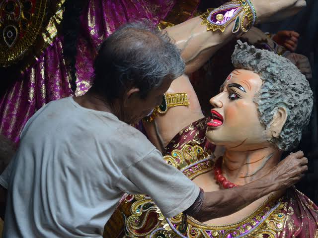 অনেক পেন্ডেল এ ঠাকুর চলে আসে ততোদিনে । সেখানেও চলে আর এক হুড়োহুড়ি । মা কে সাজানোর শেষ মুহূর্ত । চারদিকে সাজো সাজো রব । চরম ব্যস্ততা ।
